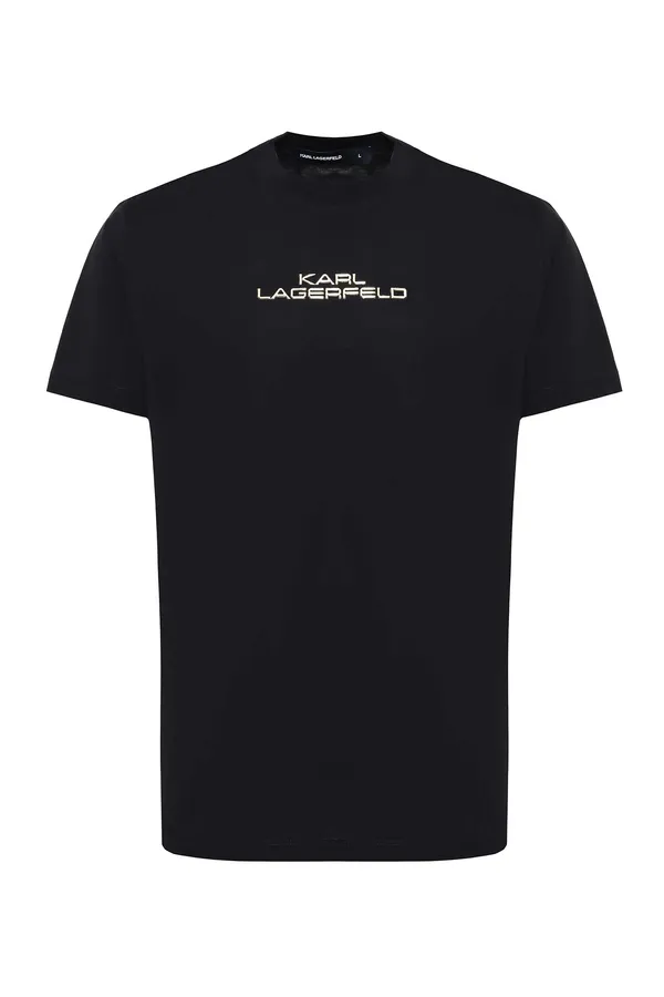 KARL LAGERFELD ФУТБОЛКА ЧЁРНАЯ, НА ГРУДИ ЗОЛОТИСТАЯ ЛОГО-НАДПИСЬ
