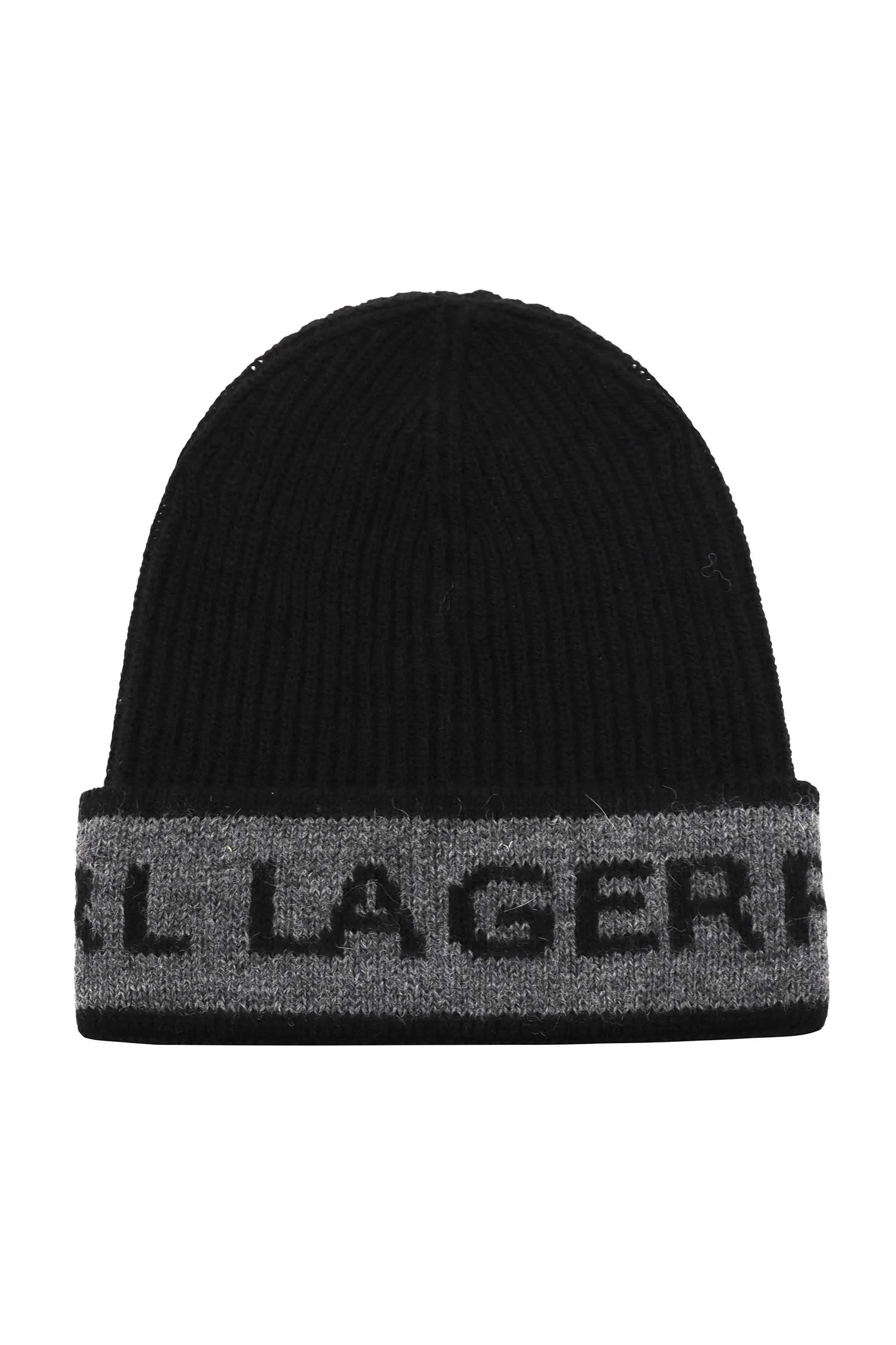KARL LAGERFELD ШАПКА M.601 ЧЁРНАЯ ШЕРСТЬ, НА ОТВОРОТЕ Т/СЕРАЯ ПОЛОСА С ЛОГО-НАДПИСЬЮ