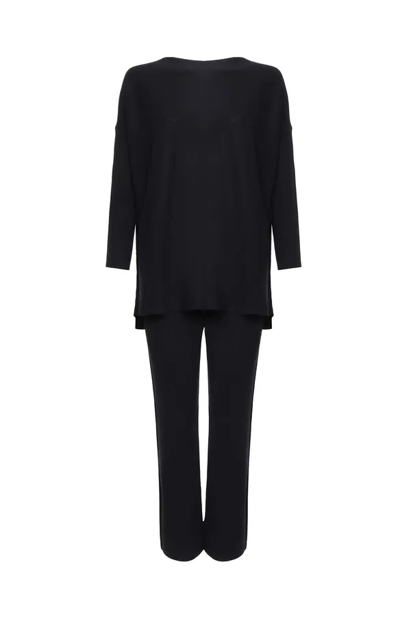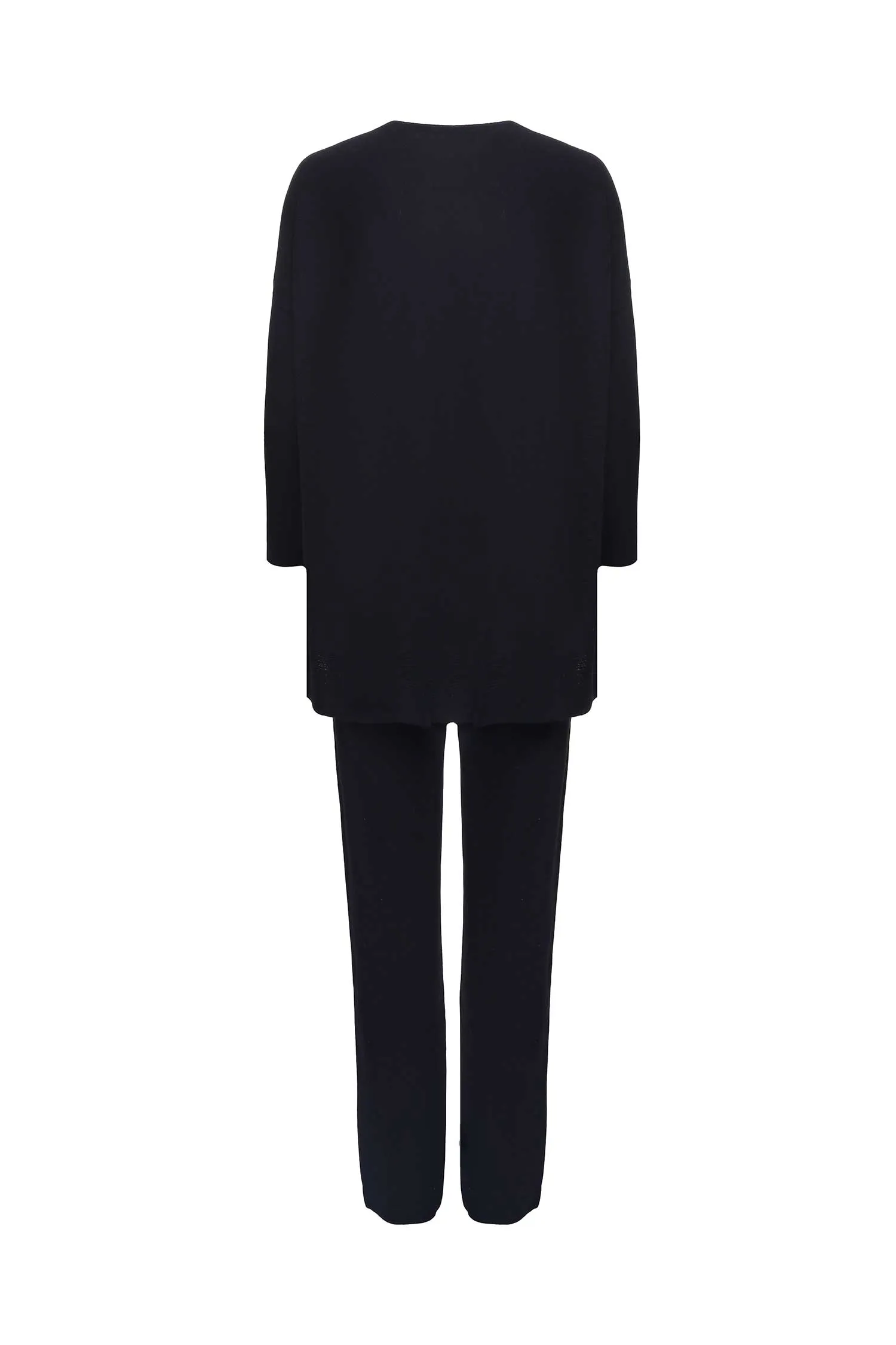 ANTELOPE КОСТЮМ ЧЁРНЫЙ ШЕРСТЬ/КАШЕМИР, ДЖЕМПЕР СВОБОДНЫЙ+ШТАНЫ, РУКАВА-РЕЗИНКА