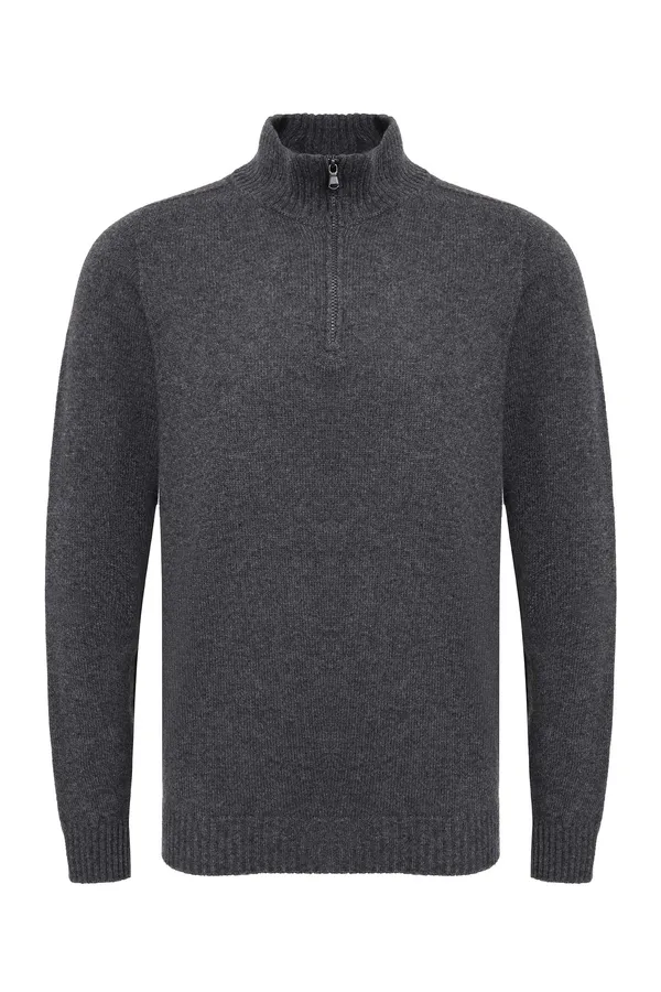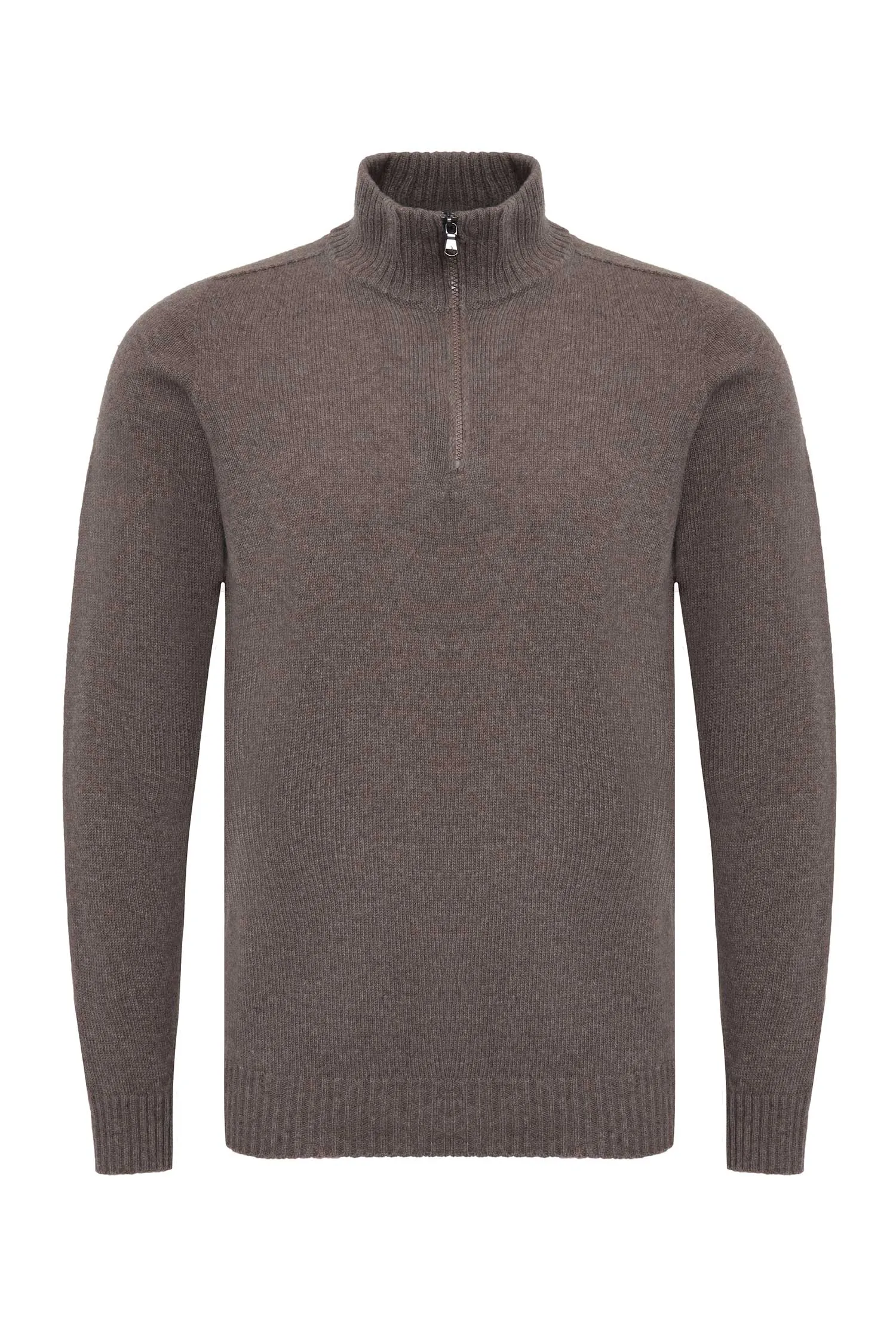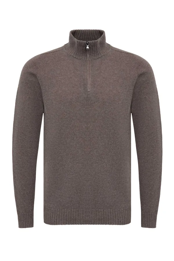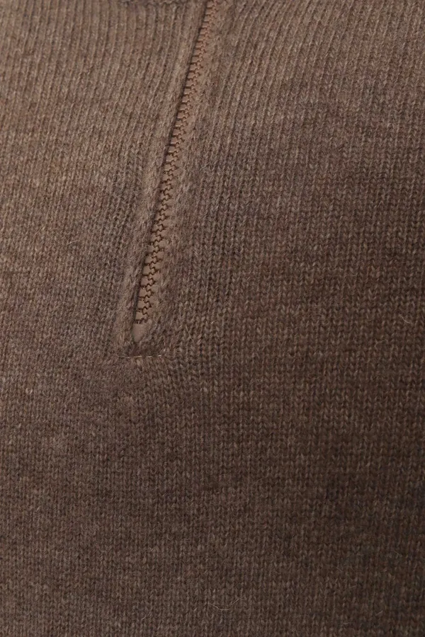 ДЖЕМПЕР M.015 КОРИЧНЕВО-БЕЖЕВЫЙ ШЕРСТЬ, ВОРОТ-СТОЙКА НА МОЛНИИ