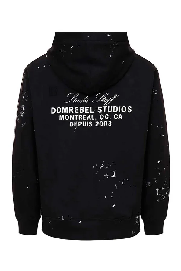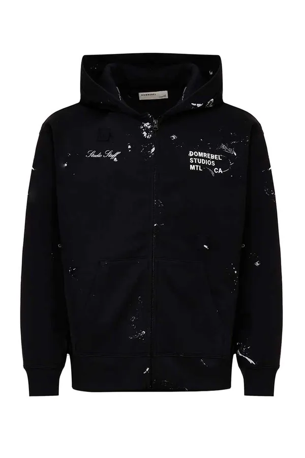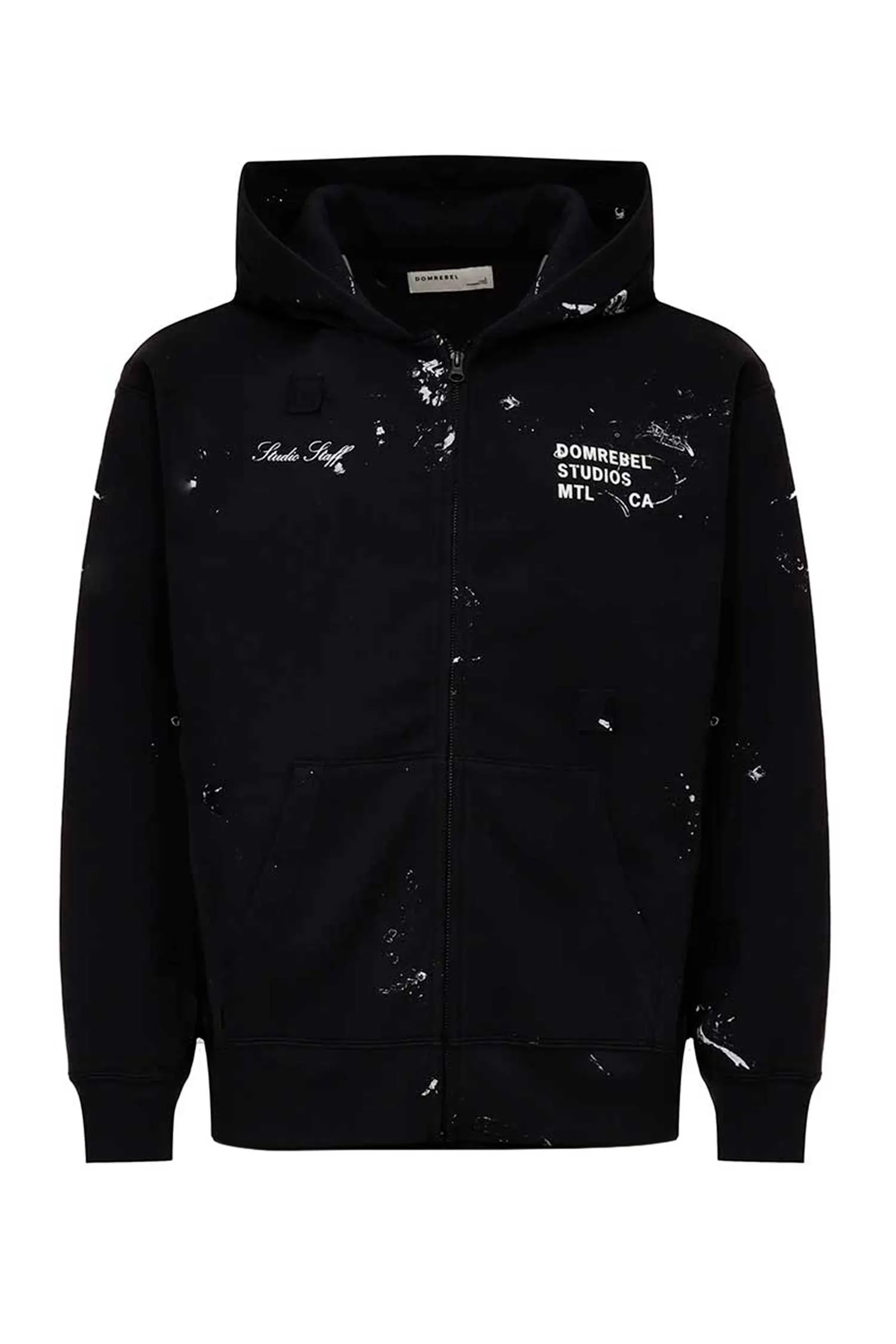 ОЛИМПИЙКА STAFF ЧЁРНАЯ, НА ГРУДИ НАДПИСЬ, БЕЛЫЕ БРЫЗГИ, КАПЮШОН