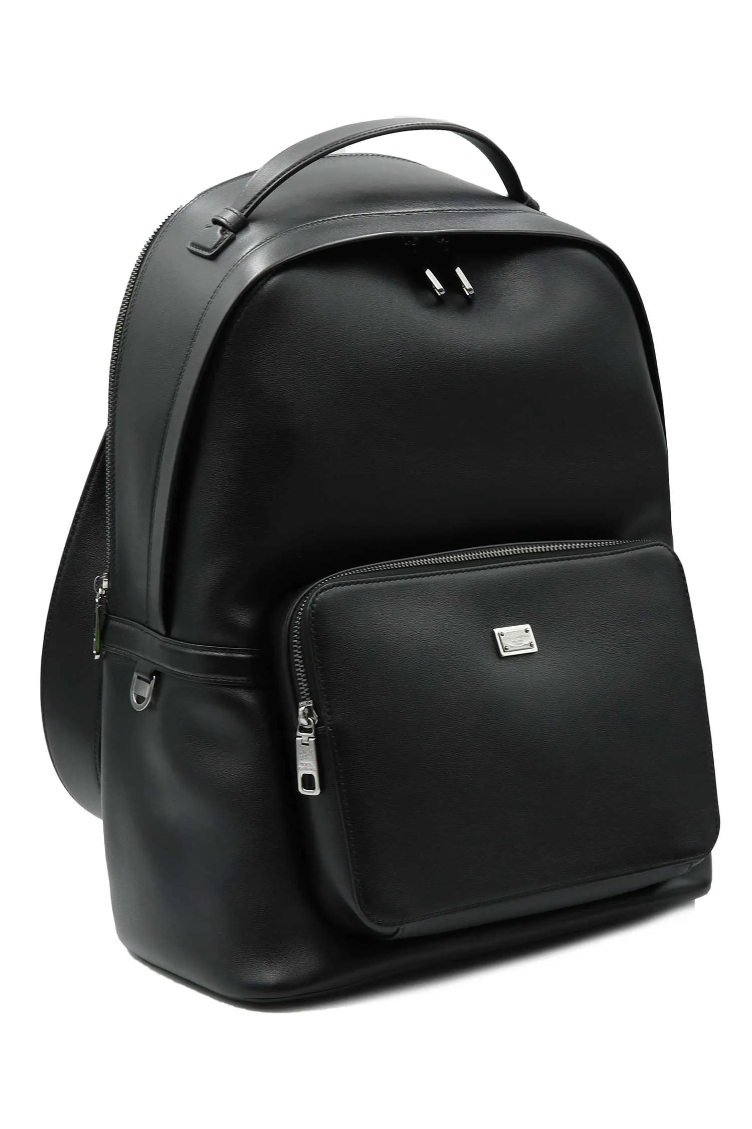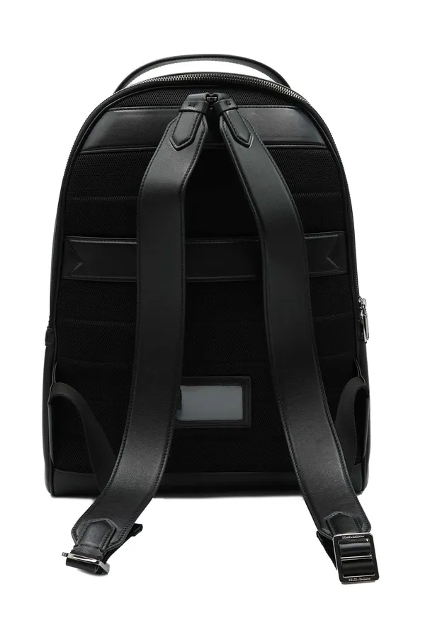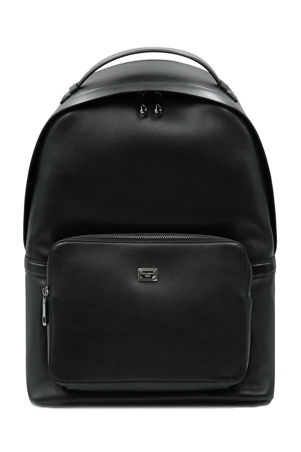 РЮКЗАК ROMA ЧЁРНЫЙ КОЖАНЫЙ, НАКЛАДНОЙ КАРМАН СПЕРЕДИ, КВАДРАТНОЕ МЕТАЛЛ. ЛОГО