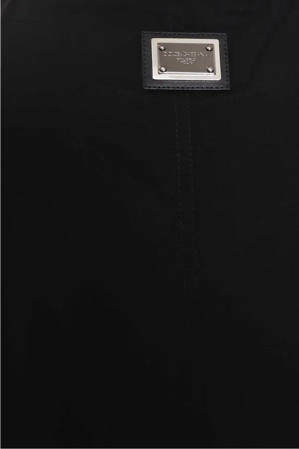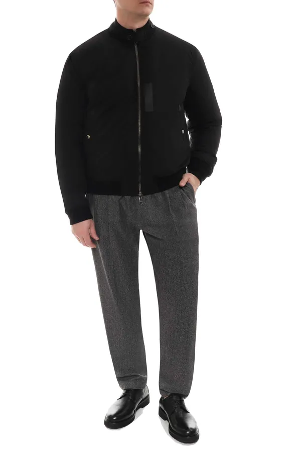 DOLCE&GABBANA ПУХОВИК-БОМБЕР M.90 ЧЁРНЫЙ, КОЖАНЫЕ ВСТАВКИ, ТРИКОТАЖНЫЙ ВОРОТ-СТОЙКА С ПУГОВИЦЕЙ