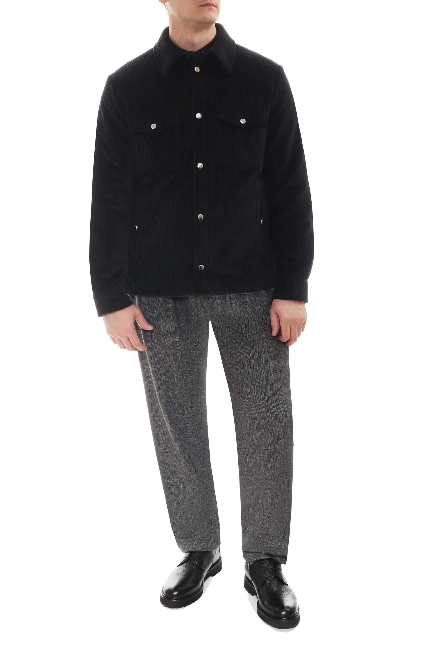 Куртка-рубашка из мягкого вельвета в широкую полоску — тёплая, комфортная и выразительная модель с аккуратной стёжкой и расслабленным силуэтом. Изготовленная из хлопка с гладкой подкладкой и утеплителем, она сочетает практичность верхней одежды с эстетикой рубашечного кроя. Накладные карманы добавляют функциональности, а металлическая деталь на спинке подчёркивает характер изделия.