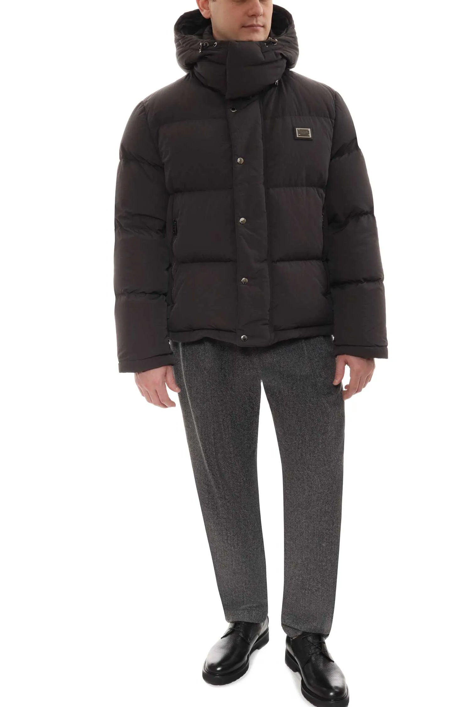 DOLCE&GABBANA ПУХОВИК Т/СЕРЫЙ, СТЁГАНЫЙ, КАРМАНЫ НА МОЛНИИ, НА ГРУДИ НАШИВКА МЕТАЛЛ. ЛОГО