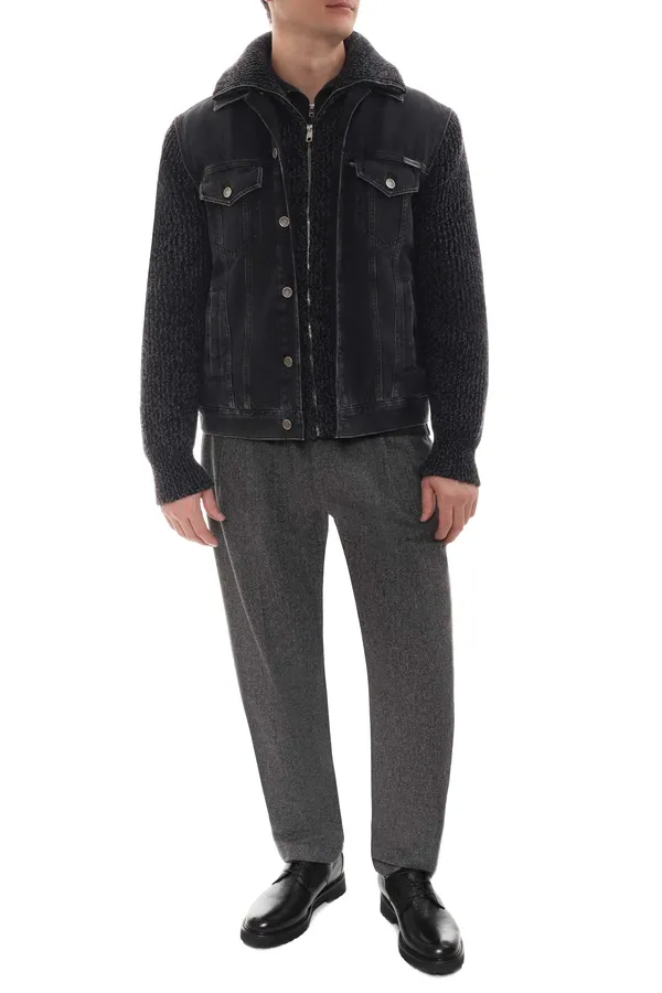 КУРТКА Т/СЕРАЯ УТЕПЛЁННАЯ КОМБИНИРОВАННАЯ: ВЯЗАНЫЕ РУКАВА+ДЖИНСОВКА