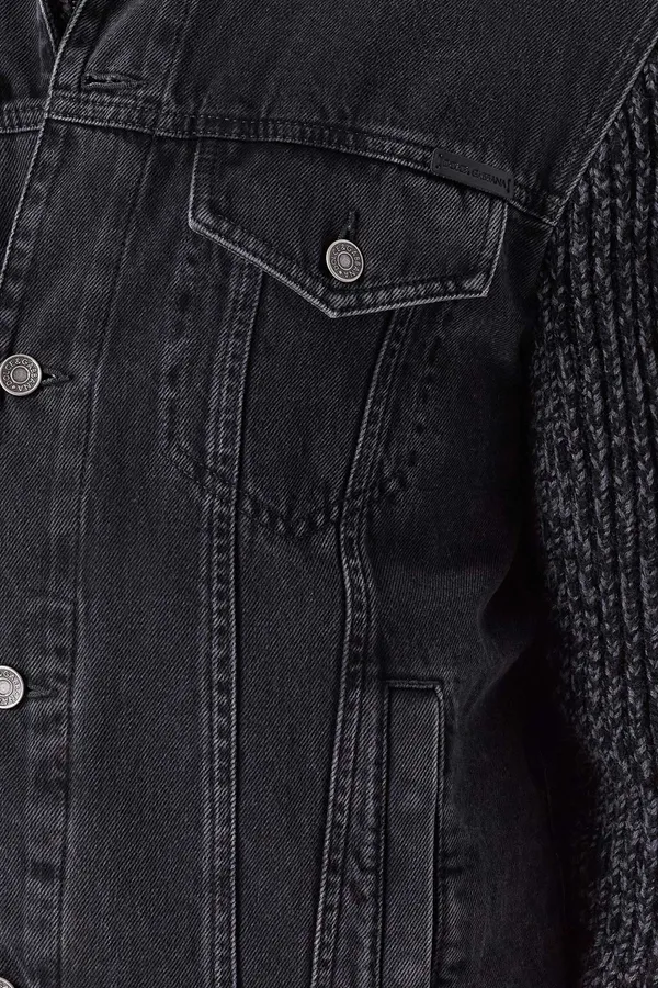 КУРТКА Т/СЕРАЯ ДЖИНСОВАЯ, КОМБИНИР., ВЯЗАНЫЕ РУКАВА, КАРМАНЫ НА ГРУДИ