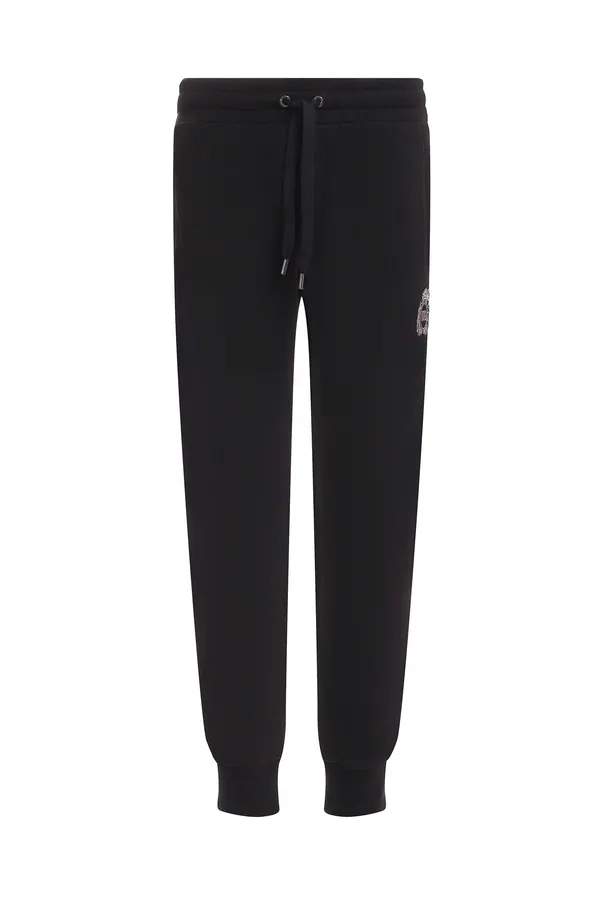 ШТАНЫ ЧЁРНЫЕ, НА КУЛИСКЕ, СБОКУ СЕРЕБРИСТАЯ НАШИВКА-ГЕРБ, МАНЖЕТЫ