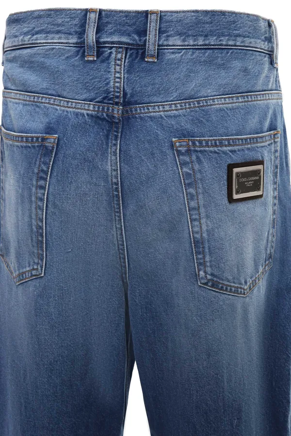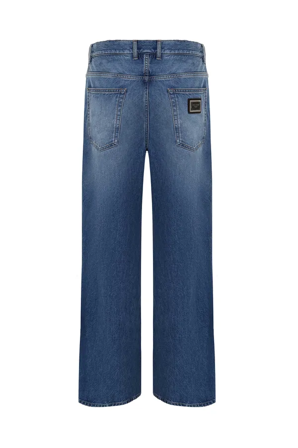 DOLCE&GABBANA ДЖИНСЫ ШИРОКИЕ СИНИЕ, ВЫБЕЛЕННЫЕ, СЗАДИ НА КАРМАНЕ МЕТАЛЛ.ЛОГО, Ш=27