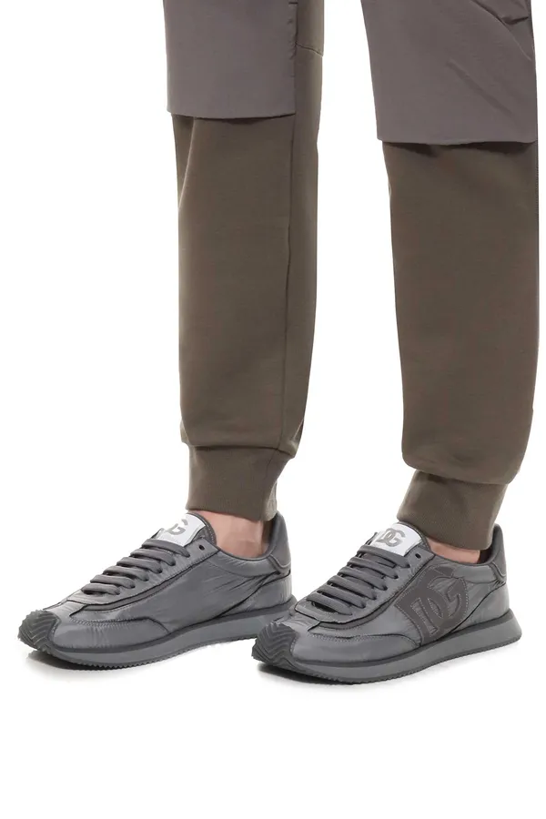 DOLCE&GABBANA КРОССОВКИ DG CUSHION Т/СЕРЫЕ НЕЙЛОН, СБОКУ ЛОГО DG, ПРОРЕЗИНЕН.НОС, КОЖАНАЯ ПЯТКА, К=2,5