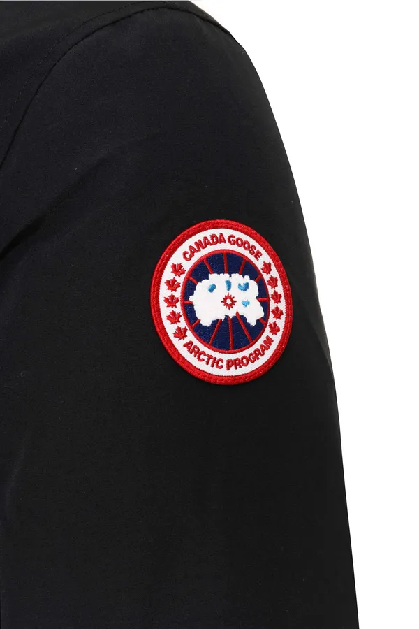 CANADA GOOSE ПУХОВИК-ПАРКА LANGFORD ЧЁРНЫЙ, КАПЮШОН, КРУГЛЫЙ ЛОГО-ПАТЧ НА РУКАВЕ
