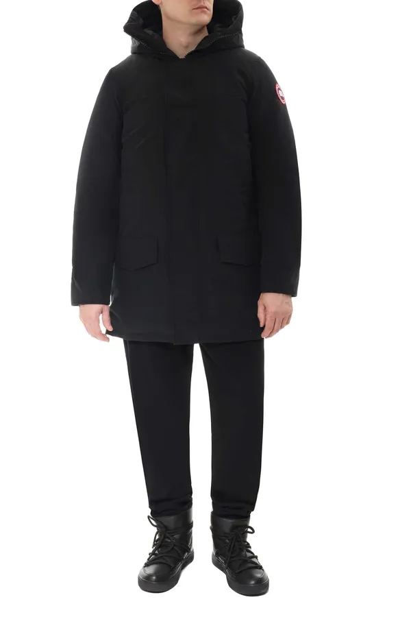 ПУХОВИК-ПАРКА LANGFORD ЧЁРНЫЙ, КАПЮШОН, КРУГЛЫЙ ЛОГО-ПАТЧ НА РУКАВЕ