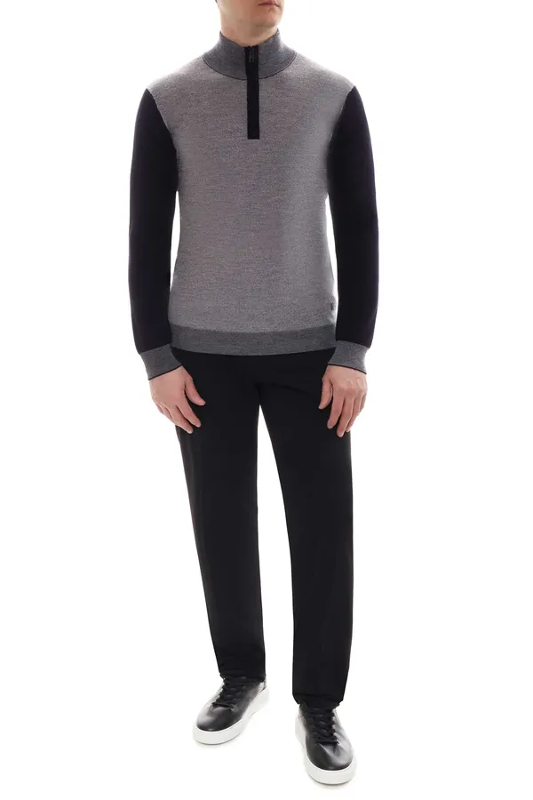 LIU-JO ДЖЕМПЕР Т/СИНЕ-СЕРЫЙ ШЕРСТЬ, ВОРОТ-СТОЙКА НА МОЛНИИ, НА РУКАВАХ ЗАПЛАТКИ