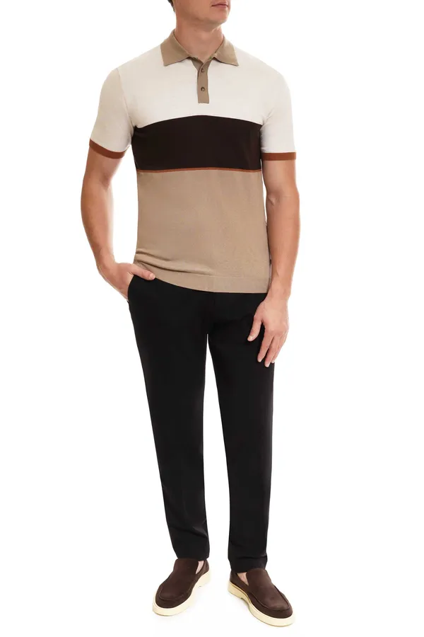 ДЖЕМПЕР-ПОЛО M.5103 МОЛОЧНО-КОРИЧЕНВО-БЕЖЕВЫЙ ШЁЛК, ШИРОКИЕ ПОЛОСЫ, СНИЗУ МАЛЕНЬКОЕ МЕТАЛЛ.ЛОГО, К/РУК.