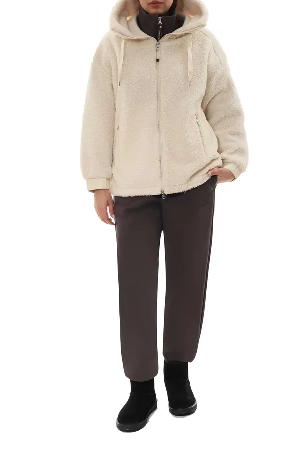 КУРТКА NOELLE МОЛОЧНАЯ ЭКОМЕХ, МАНЖЕТЫ ИЗ НЕЙЛОНА, НА РУКАВЕ НАШИВКА-ЛОГО, КАПЮШОН