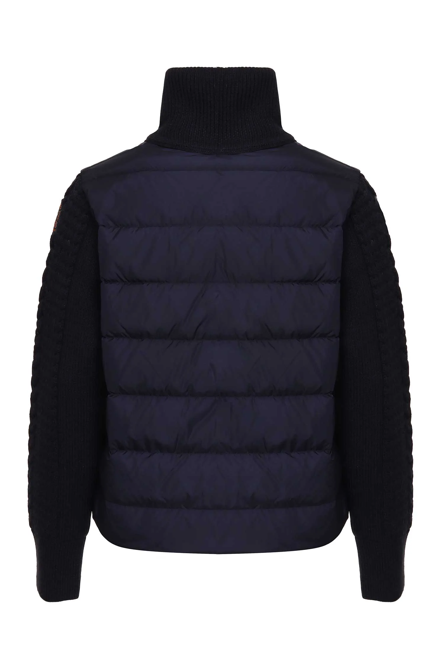 КУРТКА-ОЛИМПИЙКА MOONIE Т/СИНЯЯ НЕЙЛОН, КОМБИНИР., ТРИКОТАЖНЫЕ РУКАВА, ВЯЗКА КОСЫ, ВОРОТ-СТОЙКА