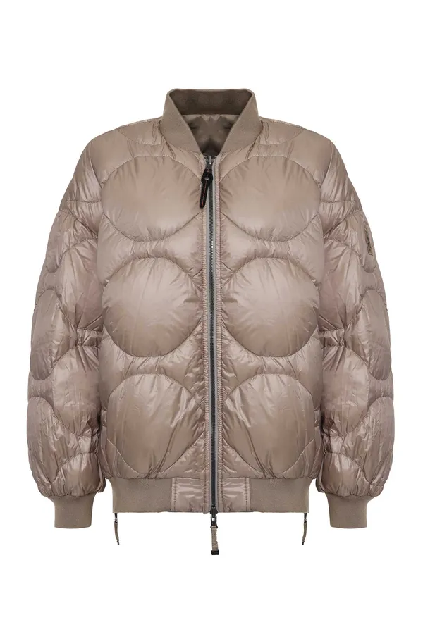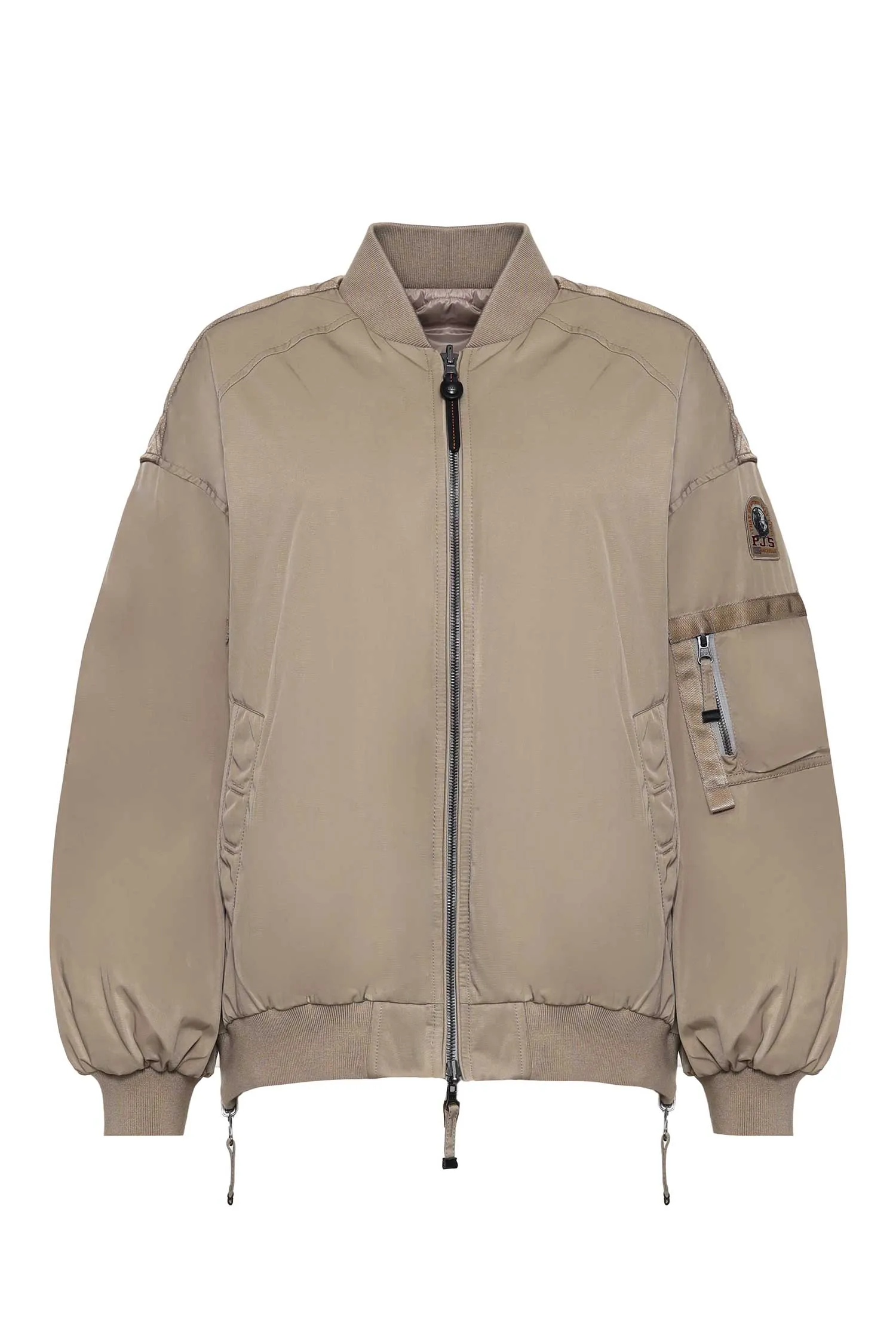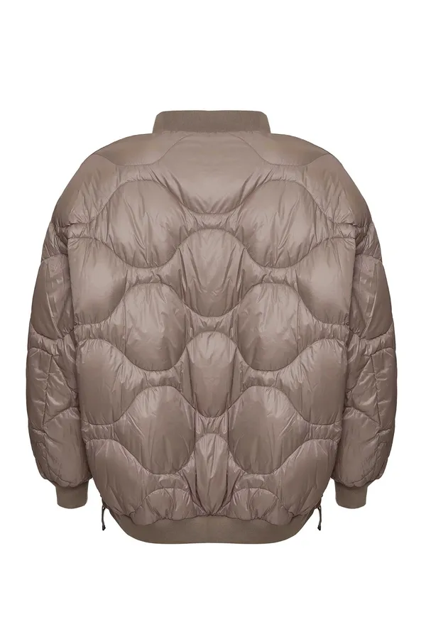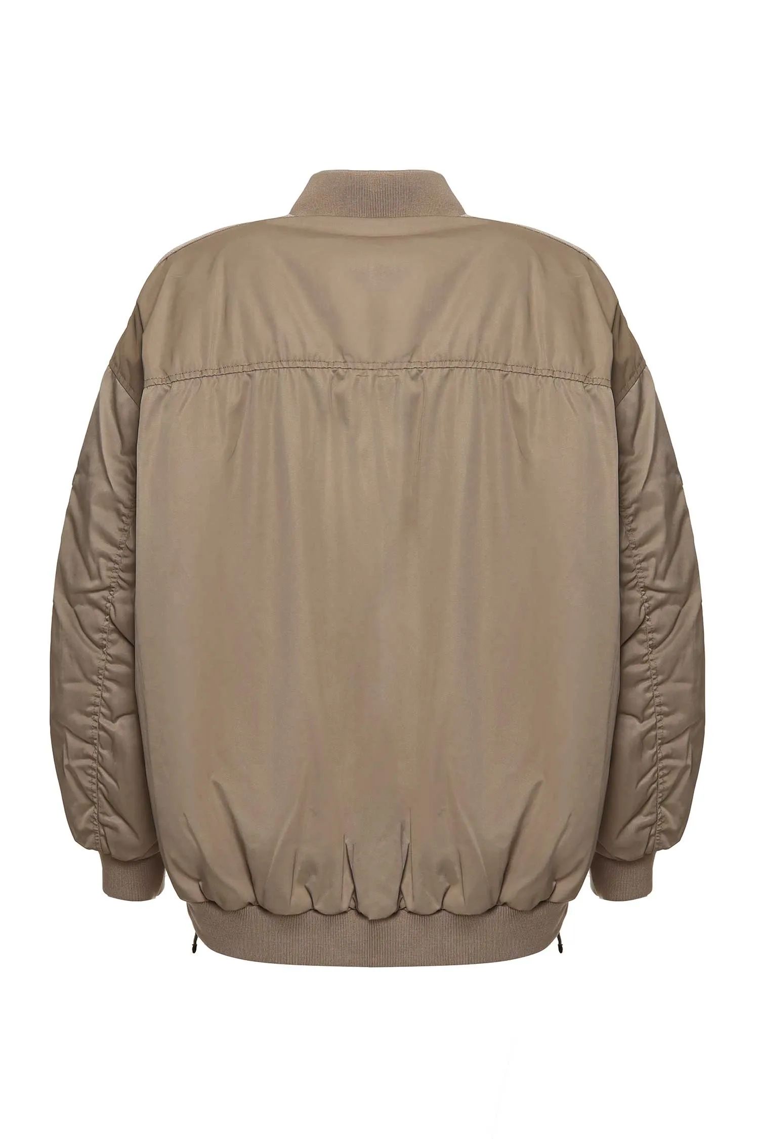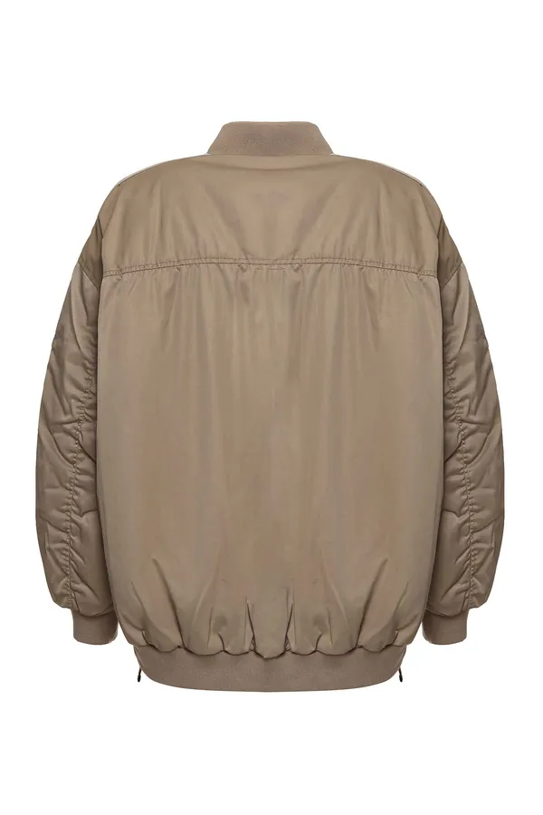 ПУХОВИК-БОМБЕР BOMB ПУДРОВО-БЕЖЕВЫЙ, КОМБИНИР., НЕЙЛОН+ТЕКСТИЛЬ, ДВУСТОРОННИЙ, НА РУКАВЕ НАКЛАДНОЙ КАРМАН
