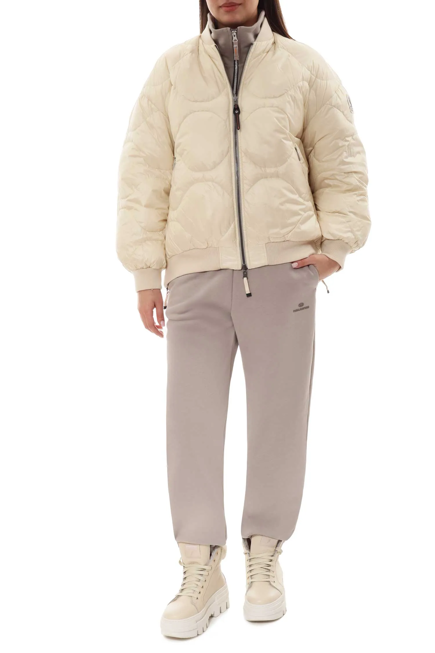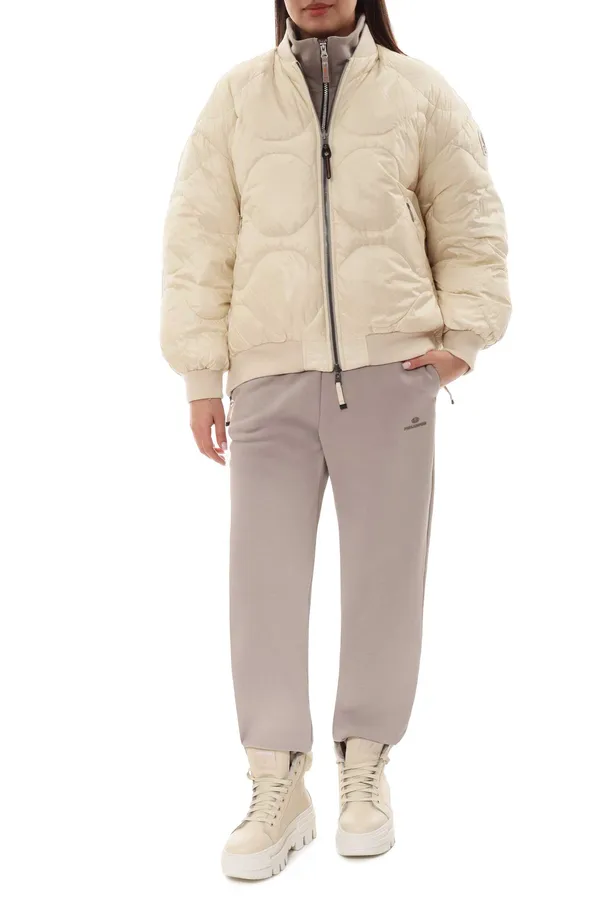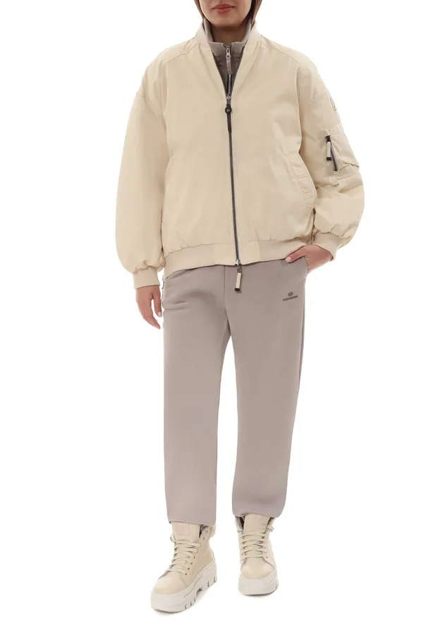 ПУХОВИК-БОМБЕР BOMB МОЛОЧНЫЙ, КОМБИНИР., НЕЙЛОН+ТЕКСТИЛЬ, ДВУСТОРОННИЙ, НА РУКАВЕ НАКЛАДНОЙ КАРМАН