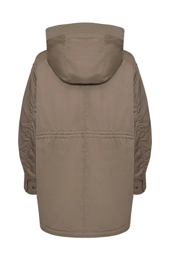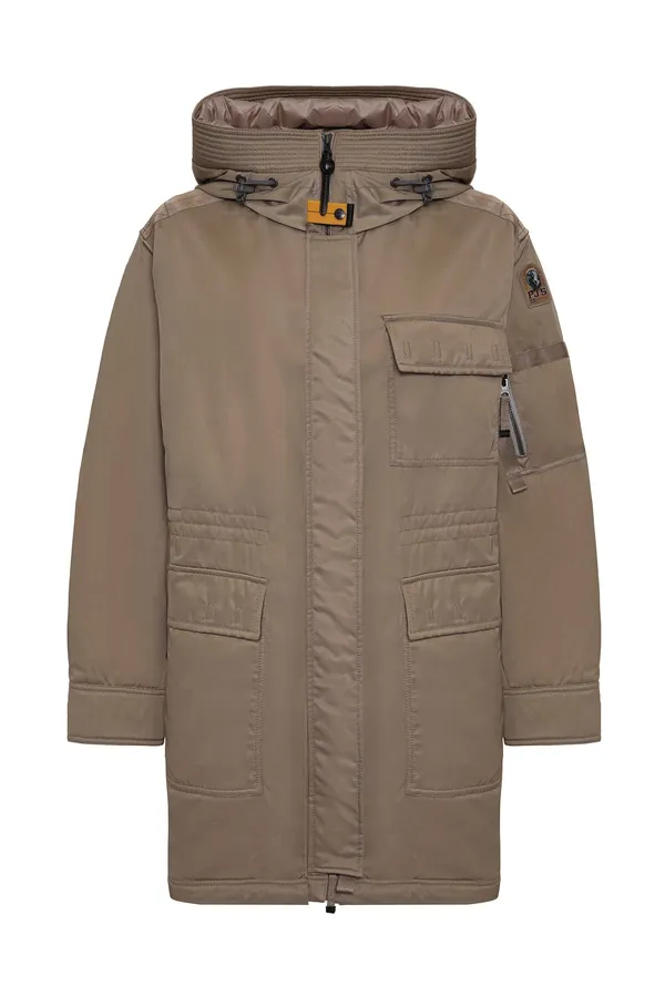 ПУХОВИК-ПАРКА NETTIE БЕЖЕВЫЙ ТЕКСТИЛЬ, ПОЯС НА КУЛИСКЕ, НАКЛАДНЫЕ КАРМАНЫ С КЛАПАНОМ, КАПЮШОН