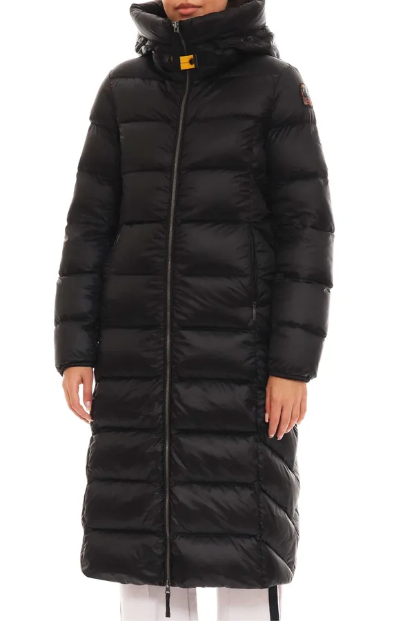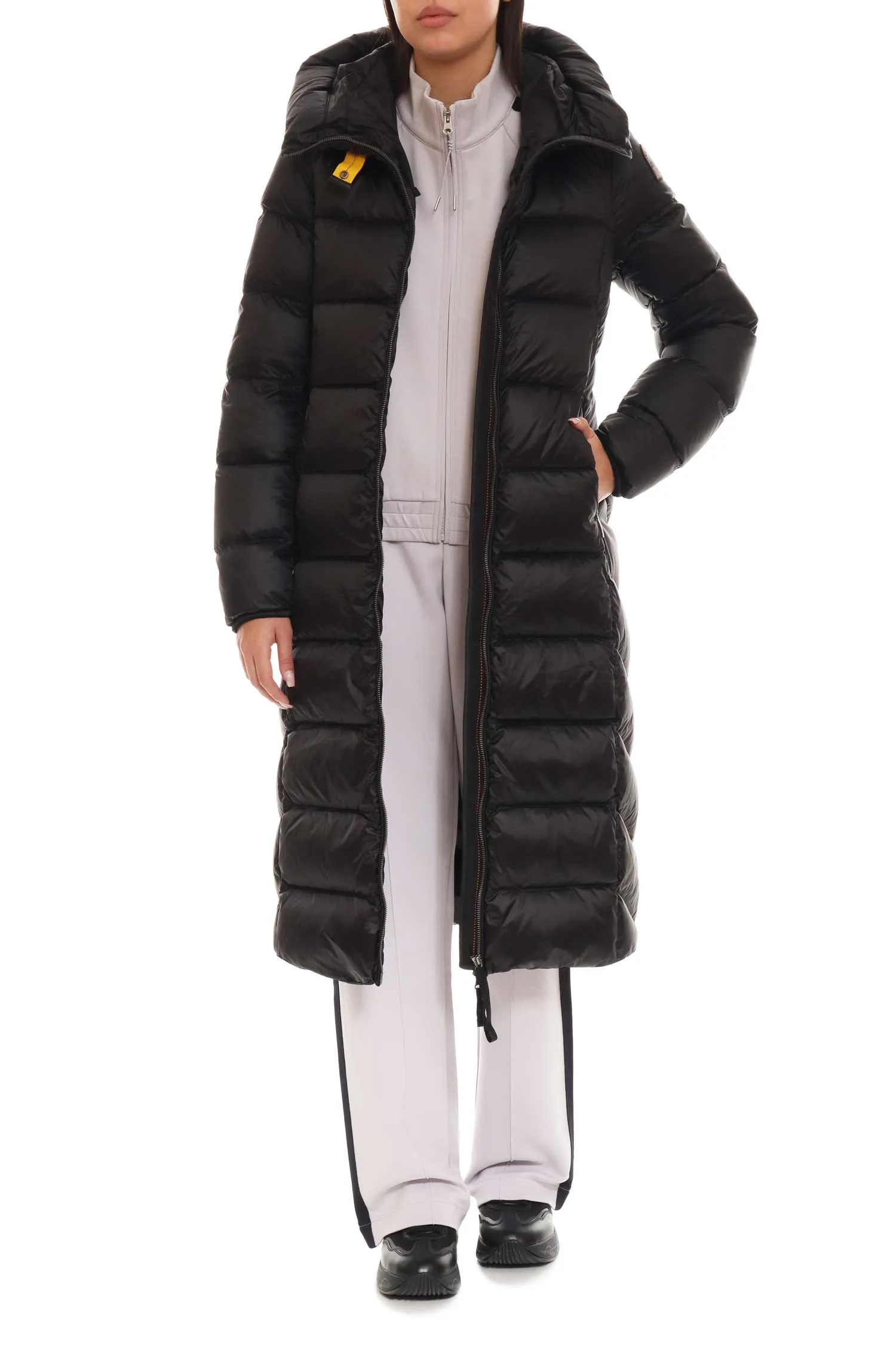 ПУХОВИК LEAH ЧЁРНЫЙ, БЛЕСТЯЩИЙ, ДЛИННЫЙ, КАПЮШОН НА КУЛИСКЕ
