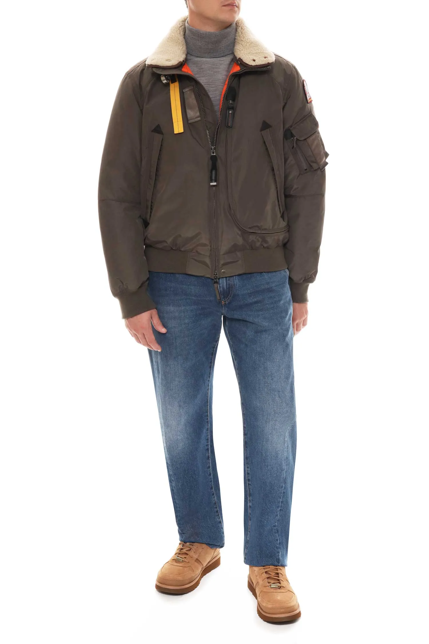 PARAJUMPERS ПУХОВИК-БОМБЕР FIRE S. ОЛИВКОВО-СЕРЫЙ, ОТСТЁГИВ.ВОРОТНИК ИЗ МЕХА, СЪЁМНЫЙ КАРАБИН, ВОРОТ-СТОЙКА