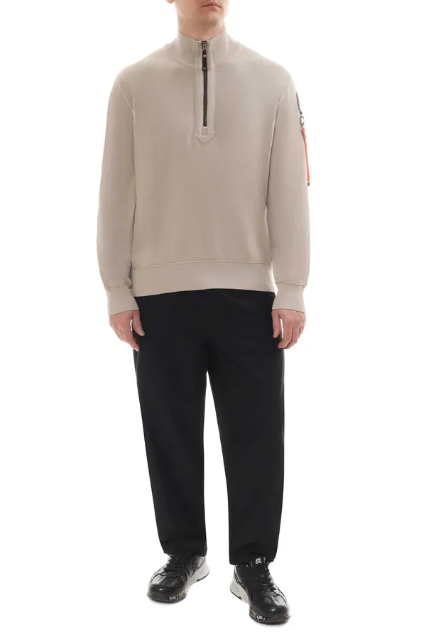PARAJUMPERS ДЖЕМПЕР BASIC SCOE 12 GG МОЛОЧНО-СЕРЫЙ, НА РУКАВЕ НАШИВКА-ЛОГО, ВОРОТ-СТОЙКА НА МОЛНИИ, БРЕЛОК-ЛОГО