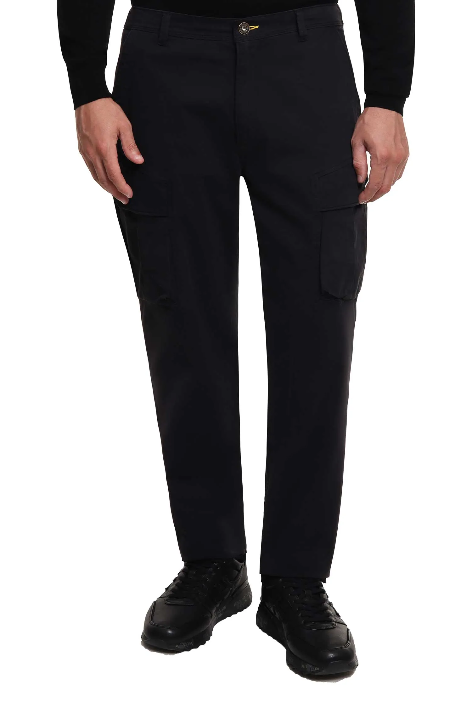 БРЮКИ-КАРГО EDMUND GD ЧЁРНЫЕ, СБОКУ КАРМАНЫ С КЛАПАНОМ, ПОЯС НА РЕЗИНКЕ