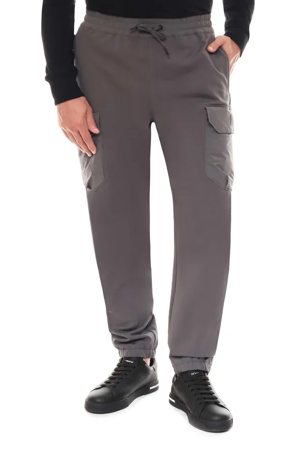 ШТАНЫ MALANGUTTI СЕРЫЕ НА КУЛИСКЕ, КАРМАНЫ С КЛАПАНОМ ИЗ НЕЙЛОНА, СНИЗУ НА РЕЗИНКЕ
