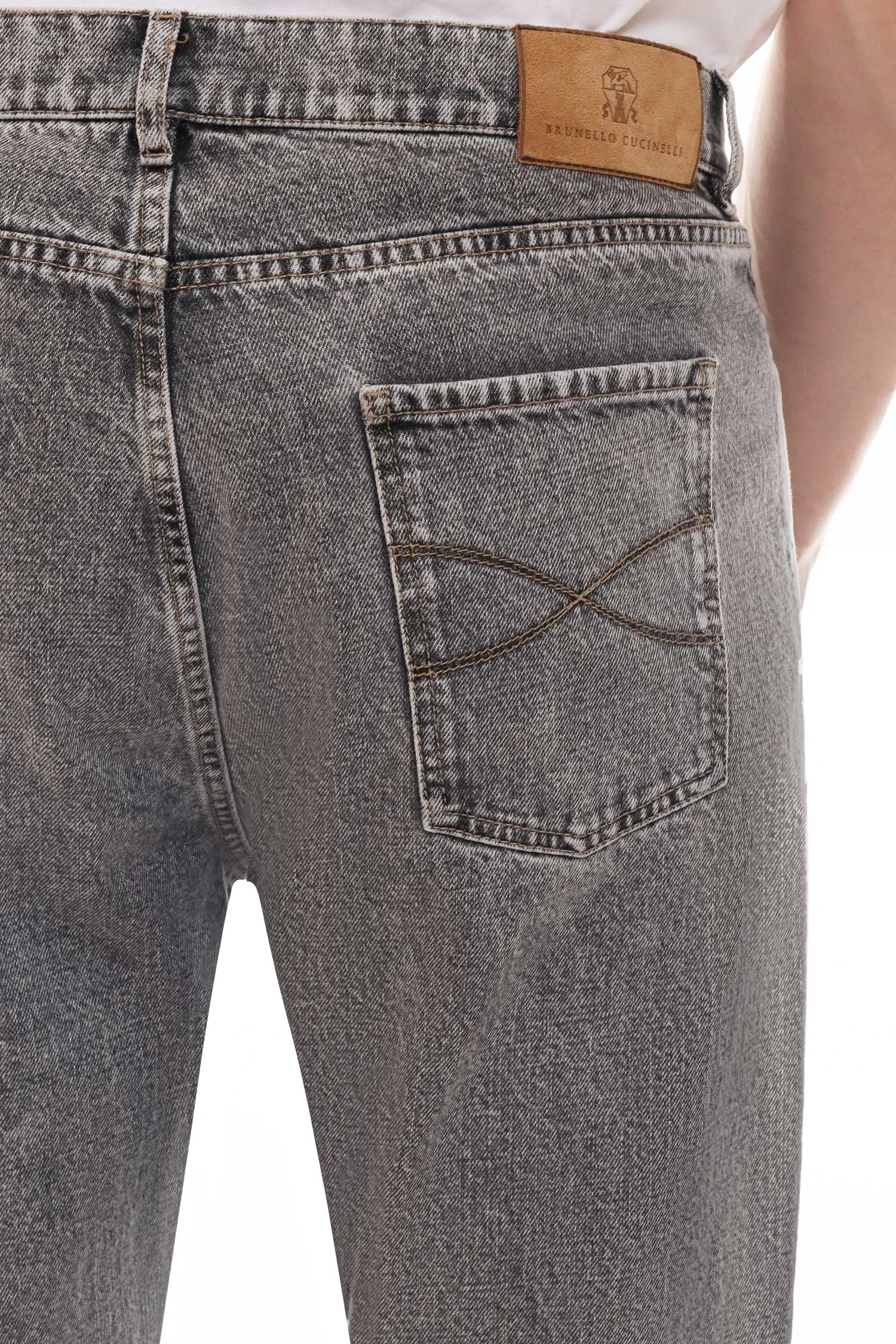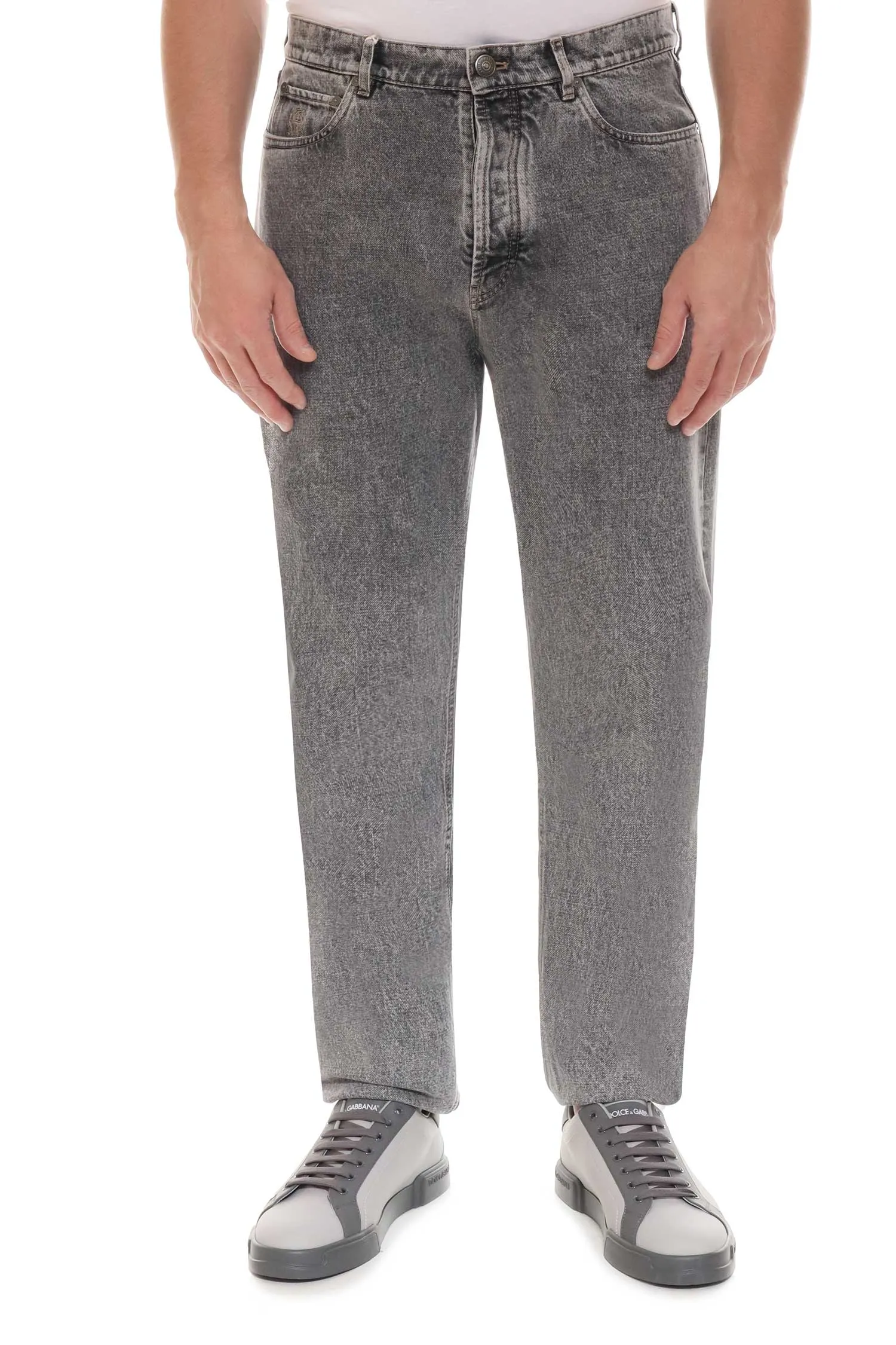 BRUNELLO CUCINELLI ДЖИНСЫ REGULAR СЕРЫЕ, ВЫБЕЛЕННЫЕ, Ш=18,5