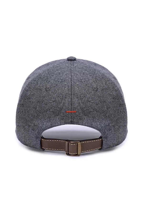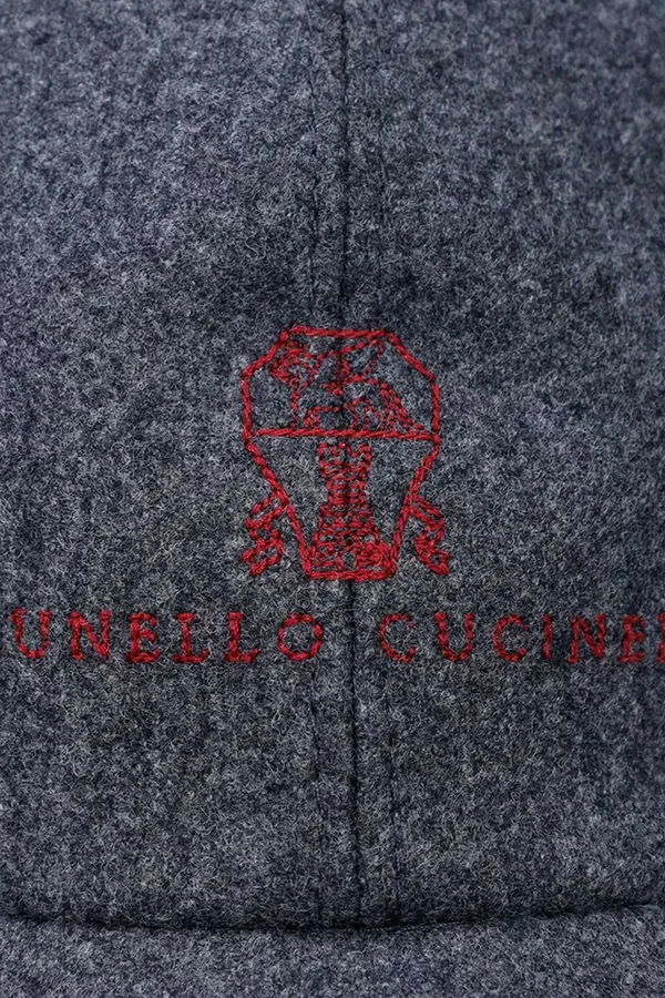 BRUNELLO CUCINELLI БЕЙСБОЛКА M.038 Т/СЕРАЯ ШЕРСТЬ, ВЫШИТАЯ КРАСНАЯ ЛОГО-НАДПИСЬ, ЛОГО