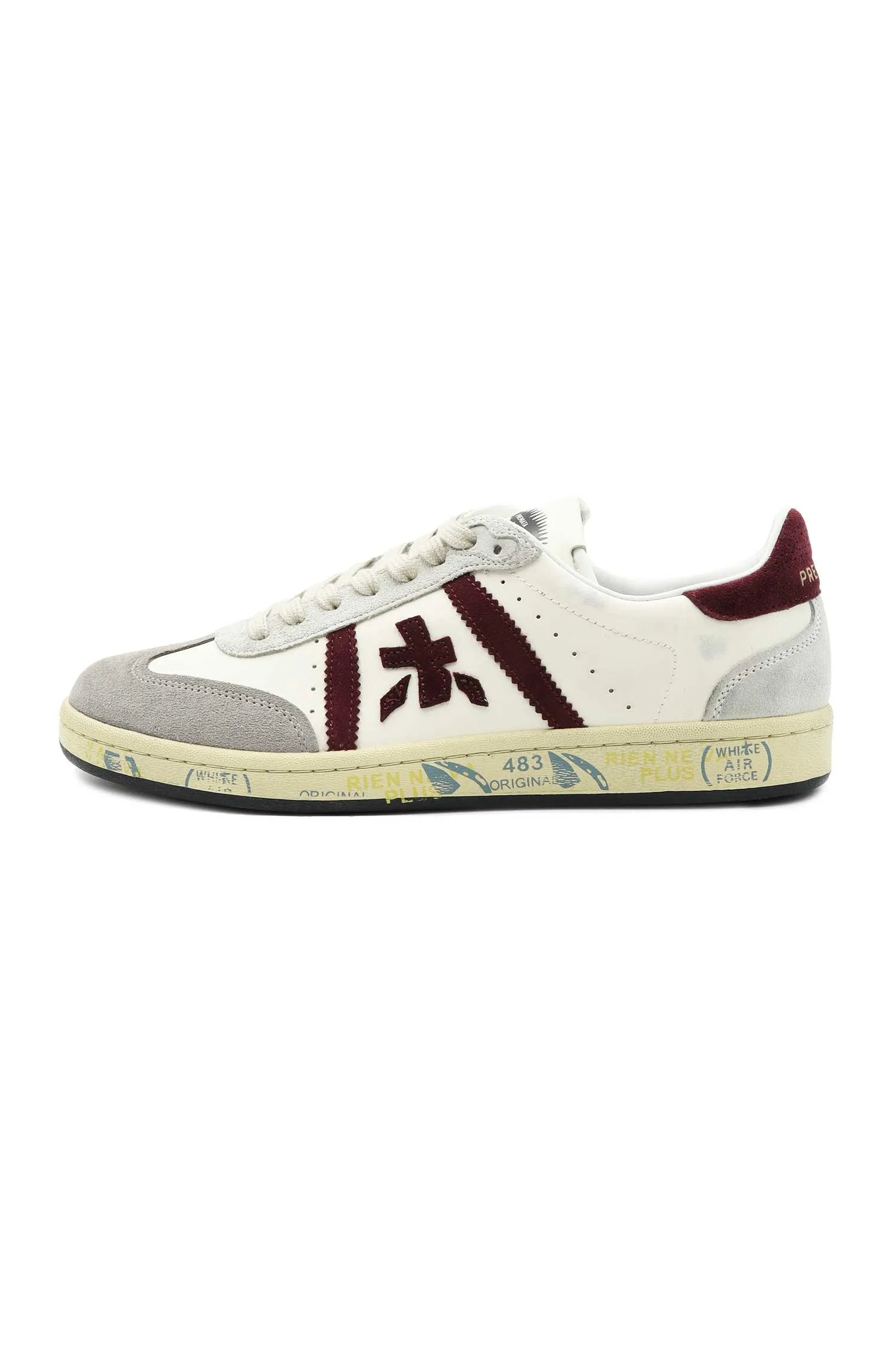 КЕДЫ BONNIE БЕЛО-СЕРЫЕ КОМБИНИР., КОЖА+ЗАМША, СБОКУ БОРДОВОЕ ЛОГО, БЕЛАЯ ПОДКЛАДКА, К=2,5