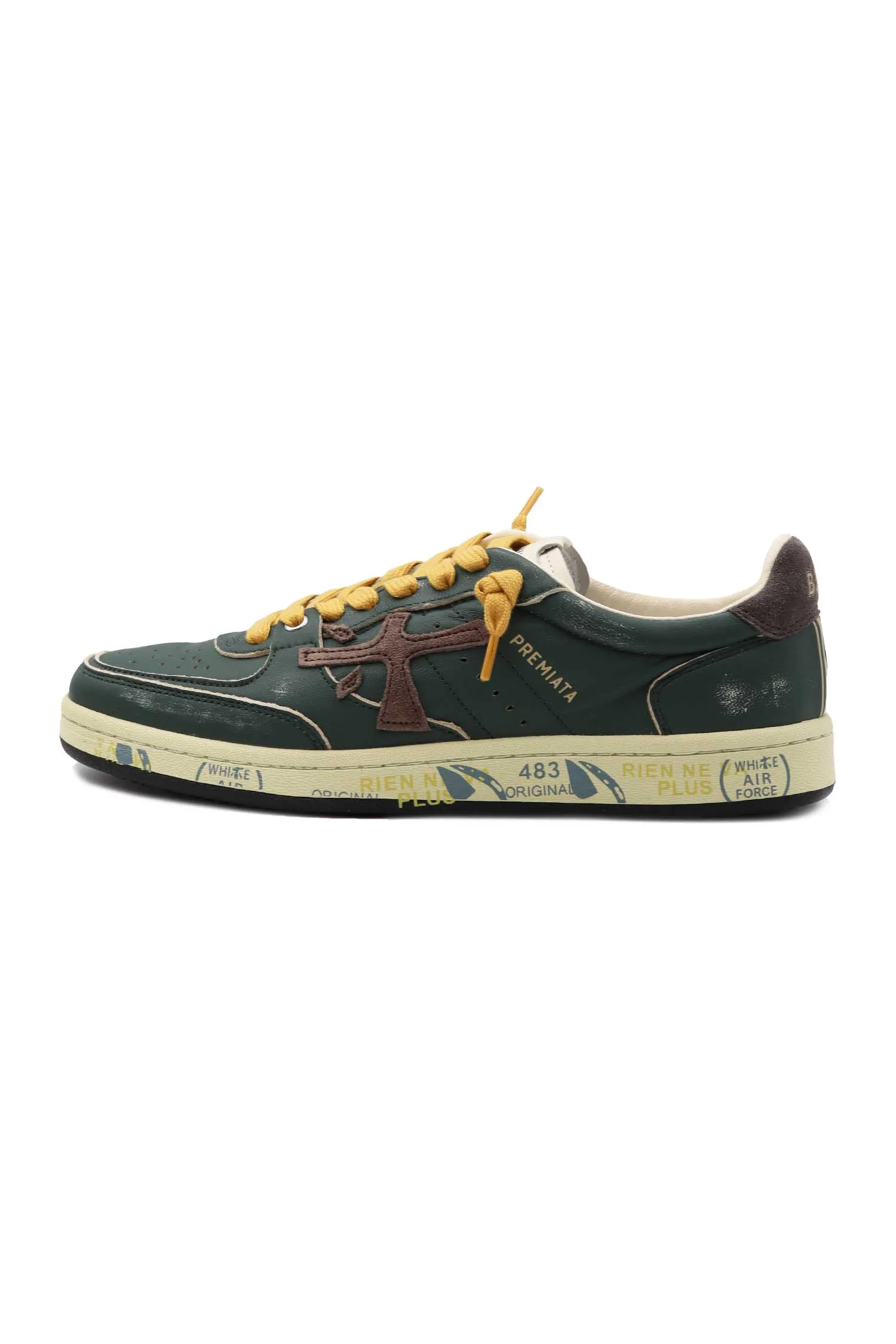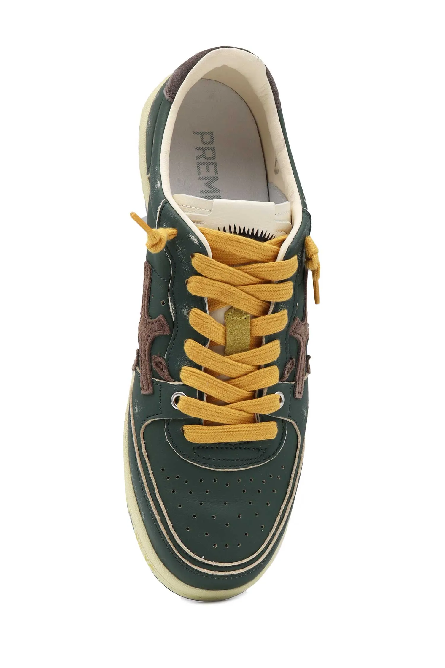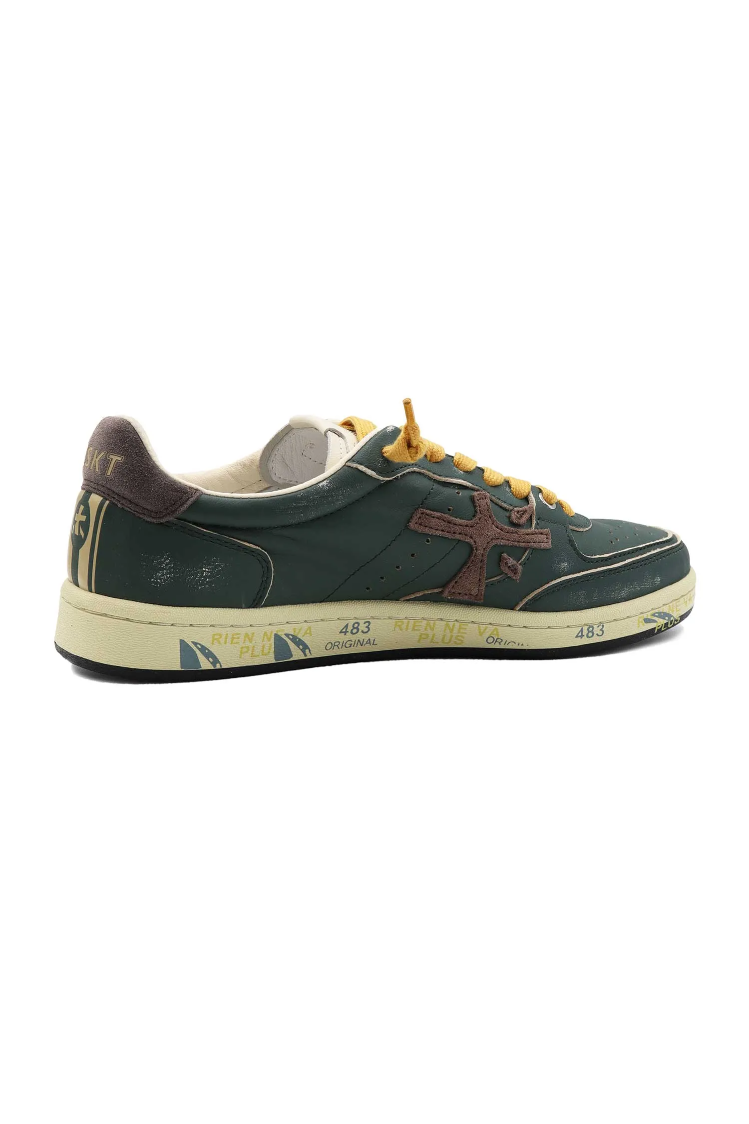 КЕДЫ BSKT CLAY Т/ЗЕЛЁНЫЕ ВИНТАЖ, МОЛОЧНАЯ ПОДКЛАДКА, ЖЁЛТЫЕ ШНУРКИ, ПЕРФОРАЦИЯ, К=3