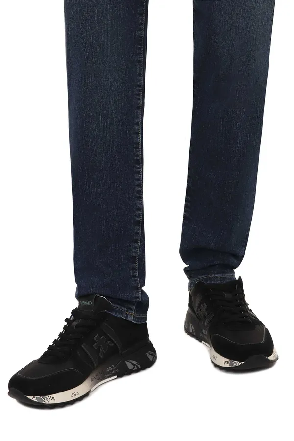 PREMIATA КРОССОВКИ LANDER ЧЁРНЫЕ, НЕЙЛОН+ЗАМША, МОЛОЧНАЯ ПЯТКА, ГОЛУБАЯ ПОДКЛАДКА, К=3,5