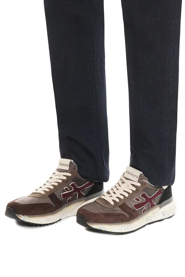 PREMIATA КРОССОВКИ MICK Т/КОРИЧНЕВЫЕ КОМБИНИР., ЗАМША+НЕЙЛОН, СБОКУ БОРДОВОЕ ЛОГО, К=3,5