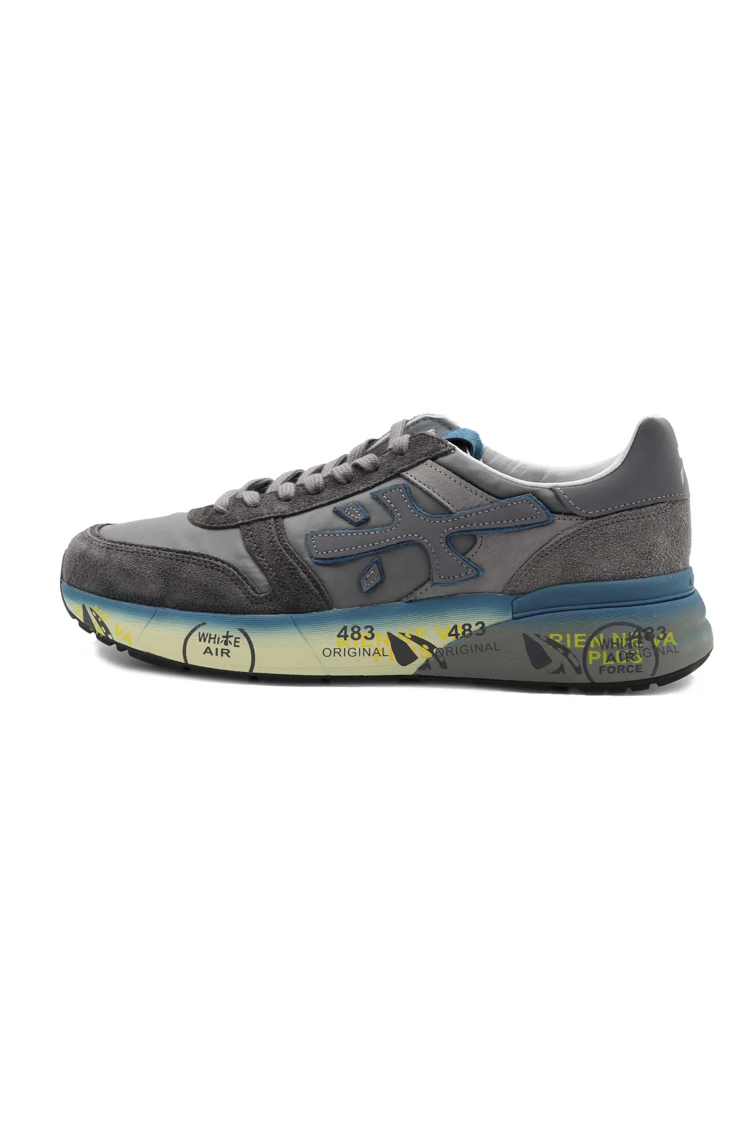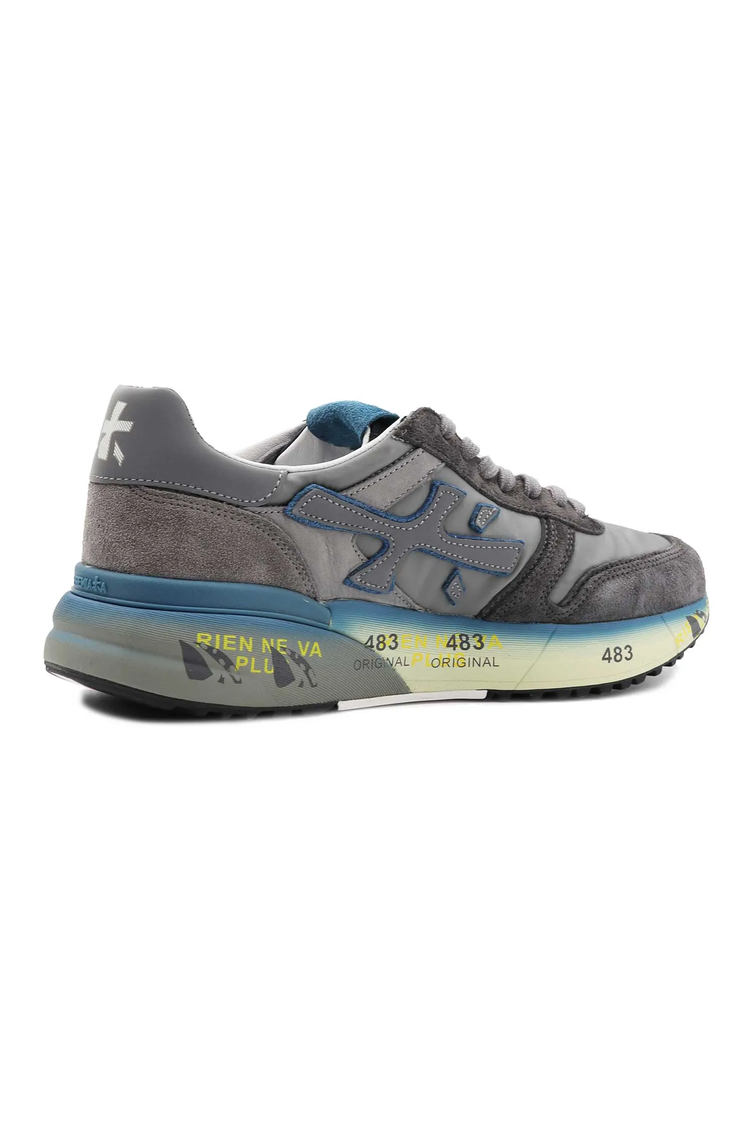 КРОССОВКИ MICK СЕРЫЕ КОМБИНИР., ЗАМША+НЕЙЛОН, ГОЛУБАЯ ПОДОШВА И ЯЗЫЧОК, К=3,5