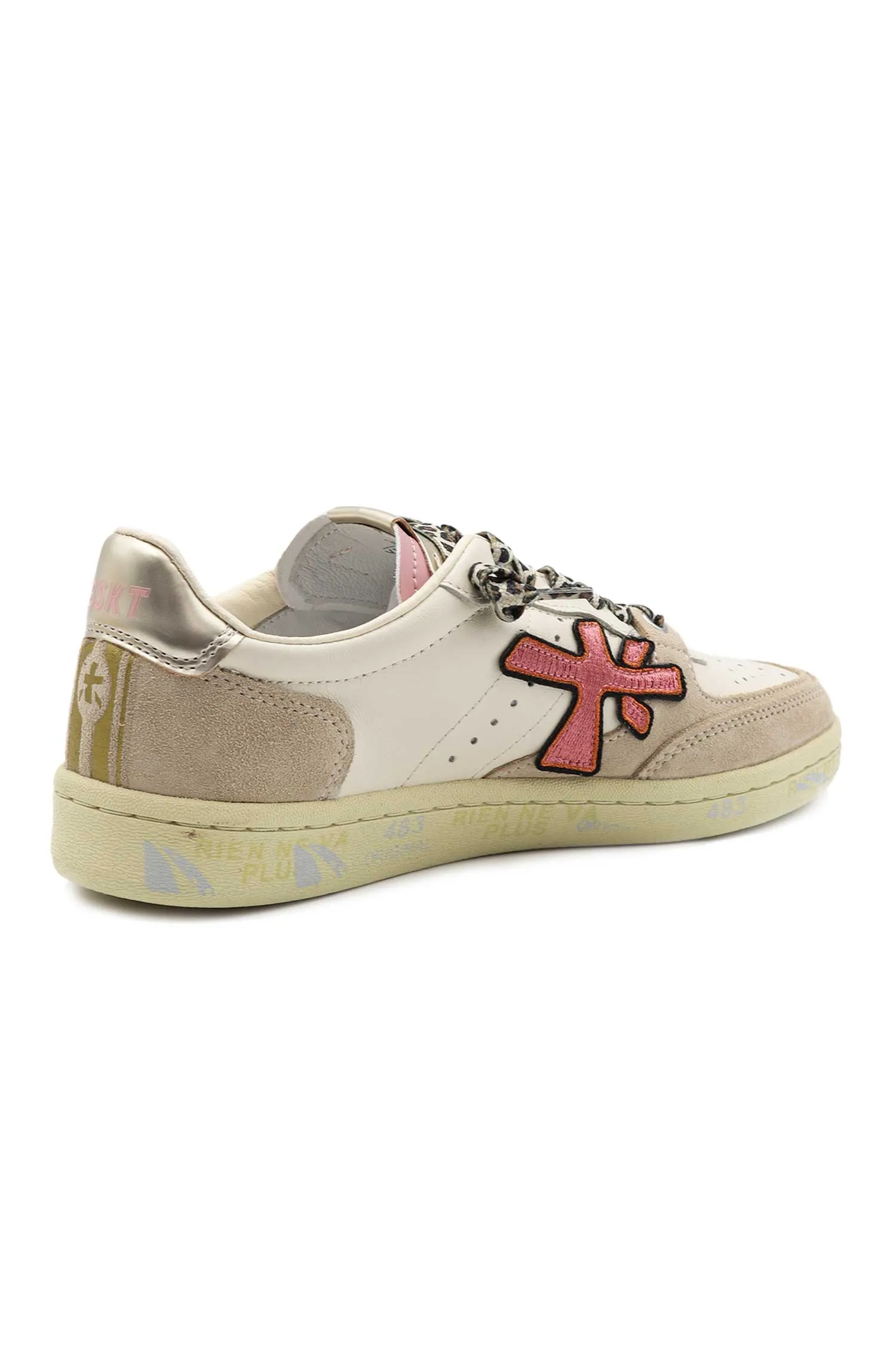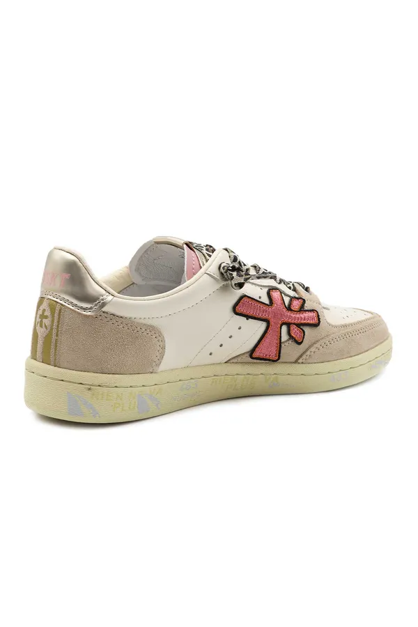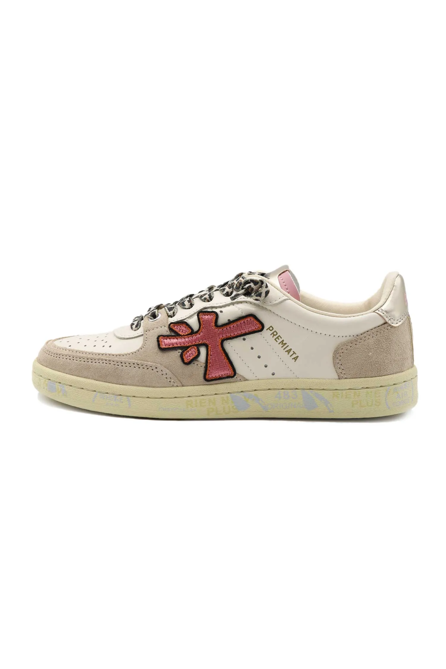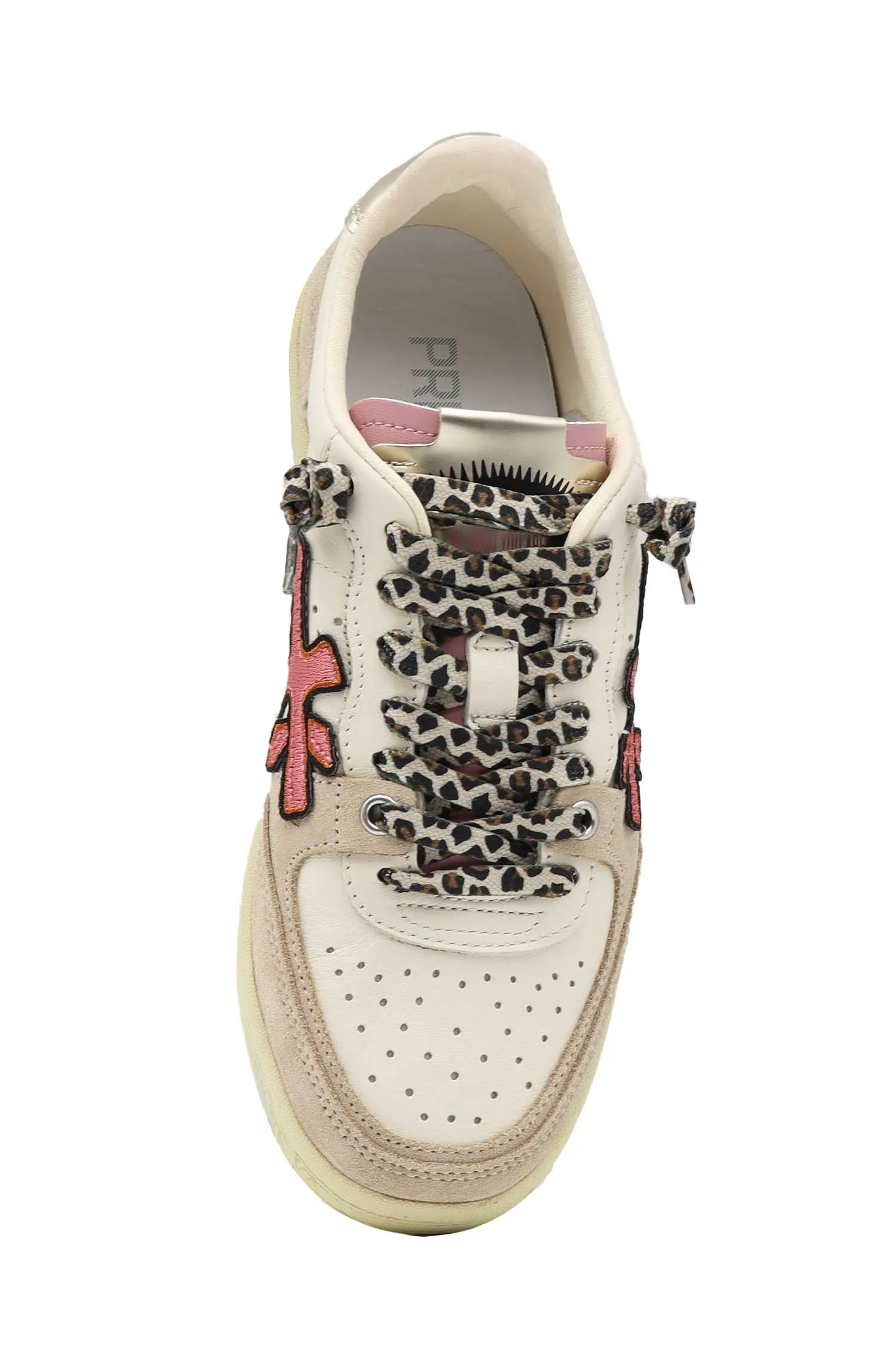 КЕДЫ BSKT CLAY-D БЕЖЕВО-МОЛОЧНЫЕ, КОЖАНЫЕ, СБОКУ КОРАЛЛОВОЕ ЛОГО, ЛЕОПАРДОВЫЕ ШНУРКИ, ПЕРФОРАЦИЯ, К=3