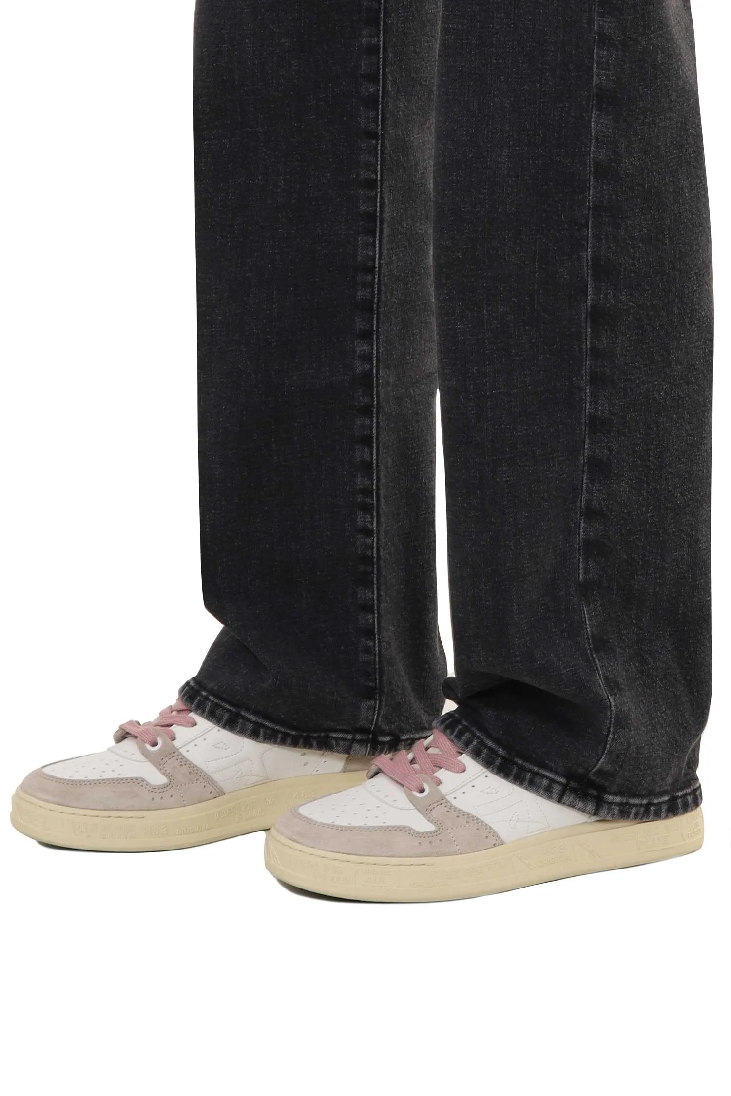PREMIATA КЕДЫ QUINN-D БЕЛО-БЕЖЕВЫЕ, КОЖА+ЗАМША, ПЕРФОРАЦИЯ, Т/БЕЖЕВАЯ ПЯТКА, СИРЕНЕВЫЕ ШНУРКИ, К=2,5