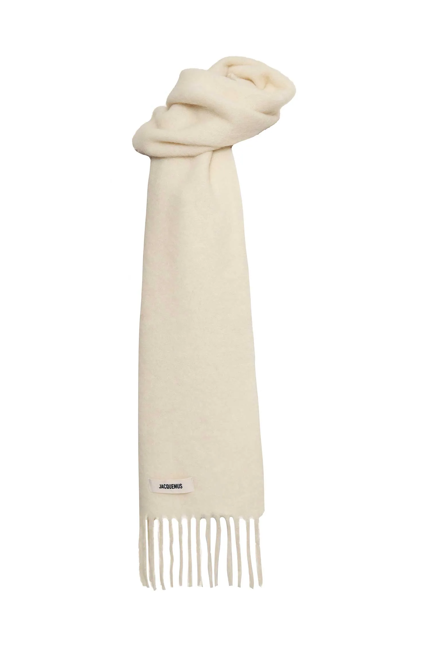 ШАРФ М.572 МОЛОЧНЫЙ ШЕРСТЬ, НАШИВКА-ЛОГО В ТОН, БАХРОМА