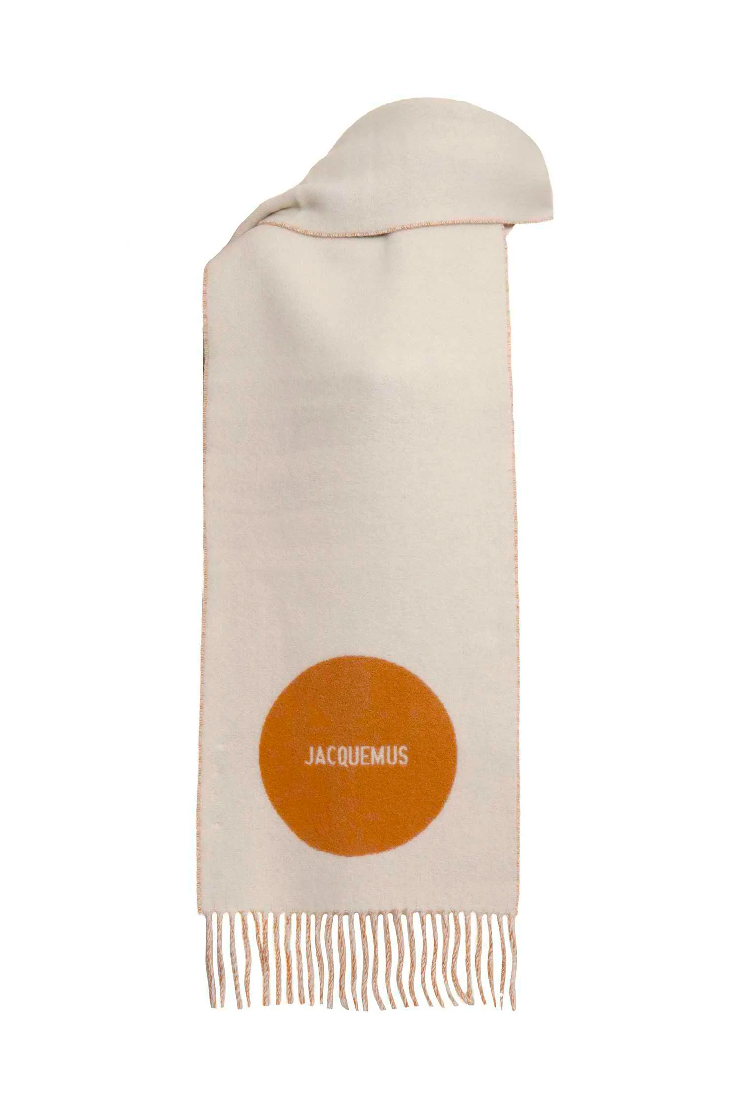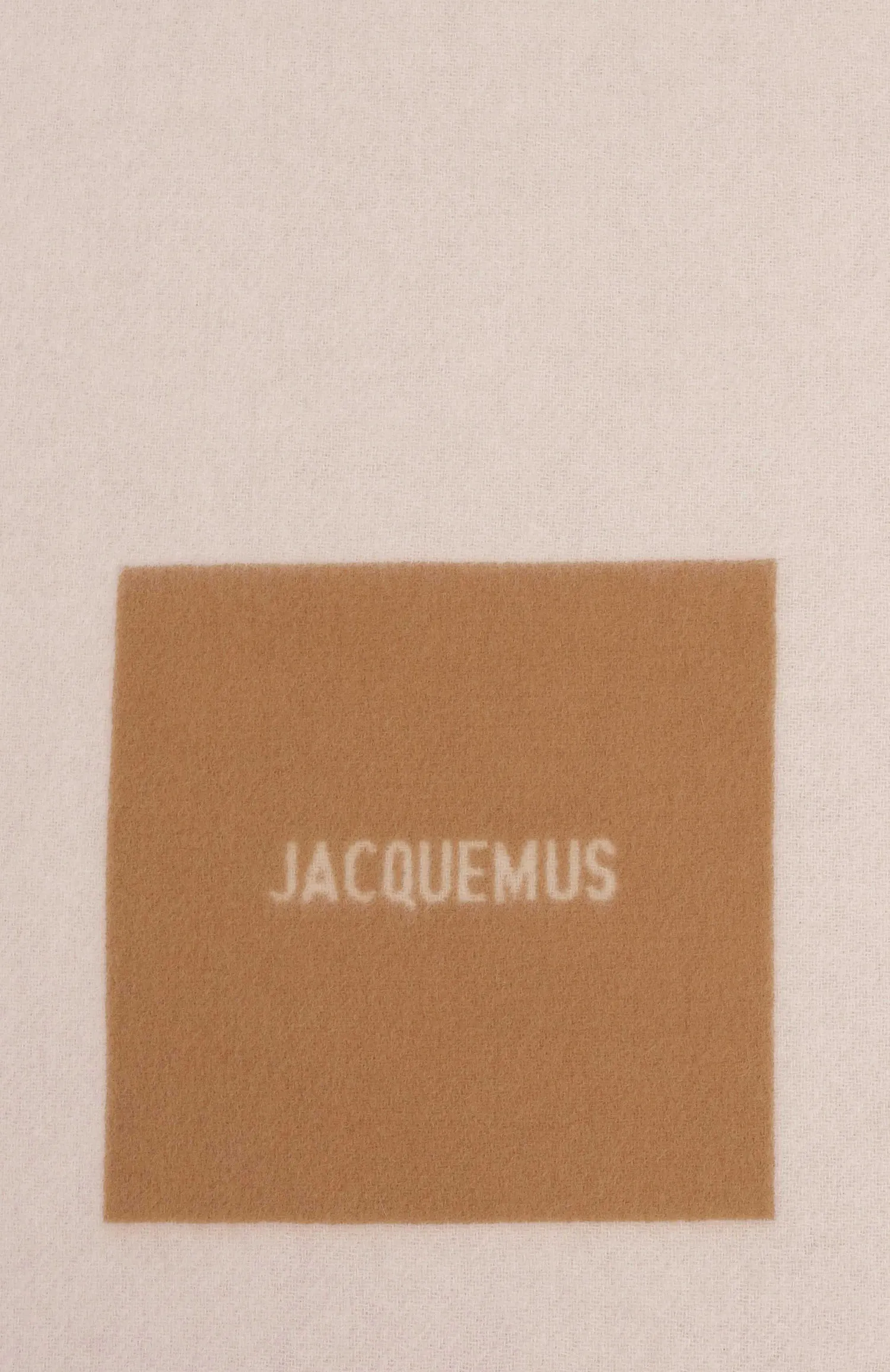 Шарф Jacquemus из натуральной шерсти отличается мягкостью и уютом, а минималистичный дизайн с жаккардовым кругом и квадратом придаёт аксессуару характерный акцент бренда. Длинная форма и тонкая бахрома делают его универсальным элементом зимнего гардероба, который легко впишется как в повседневные, так и в более элегантные образы.