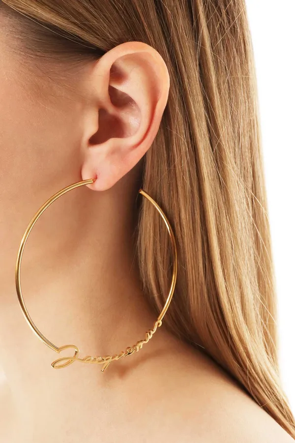 СЕРЬГИ-КОЛЬЦА LES CREOLES JACQUEMUS ЗОЛОТИСТЫЕ, КВАДРАТНАЯ/КРУГЛАЯ ЗАСТЁЖКА