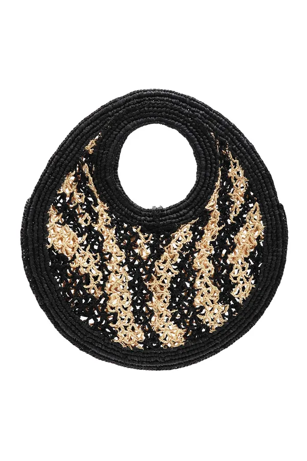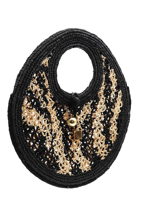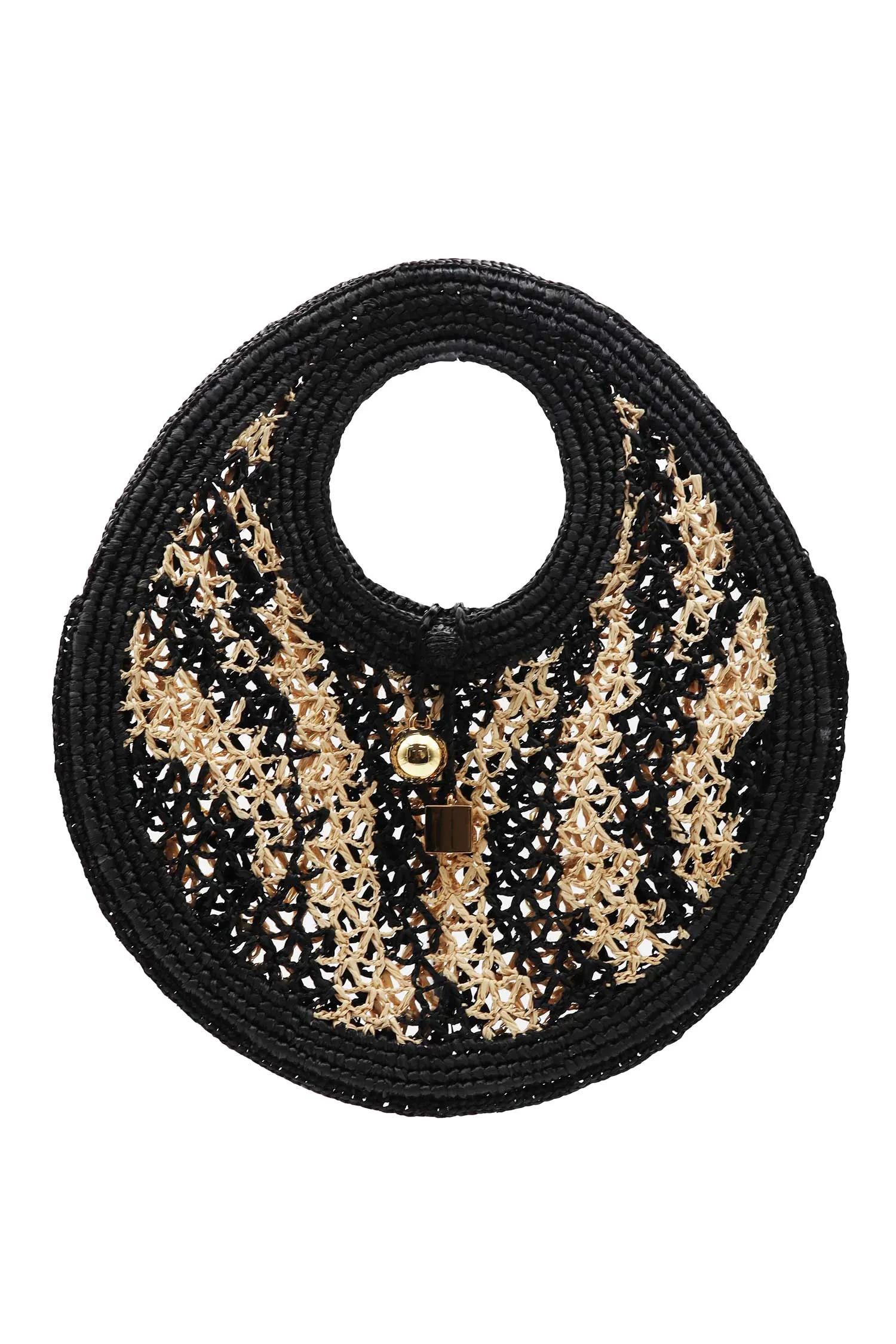 СУМКА LE PETIT ROND SPIAGGIA БЕЖЕВО-ЧЁРНАЯ, ПЛЕТЁНАЯ, КРУГЛОЙ ФОРМЫ, ЗОЛОТИСТЫЕ ГЕОМЕТРИЧ.ПОДВЕСКИ