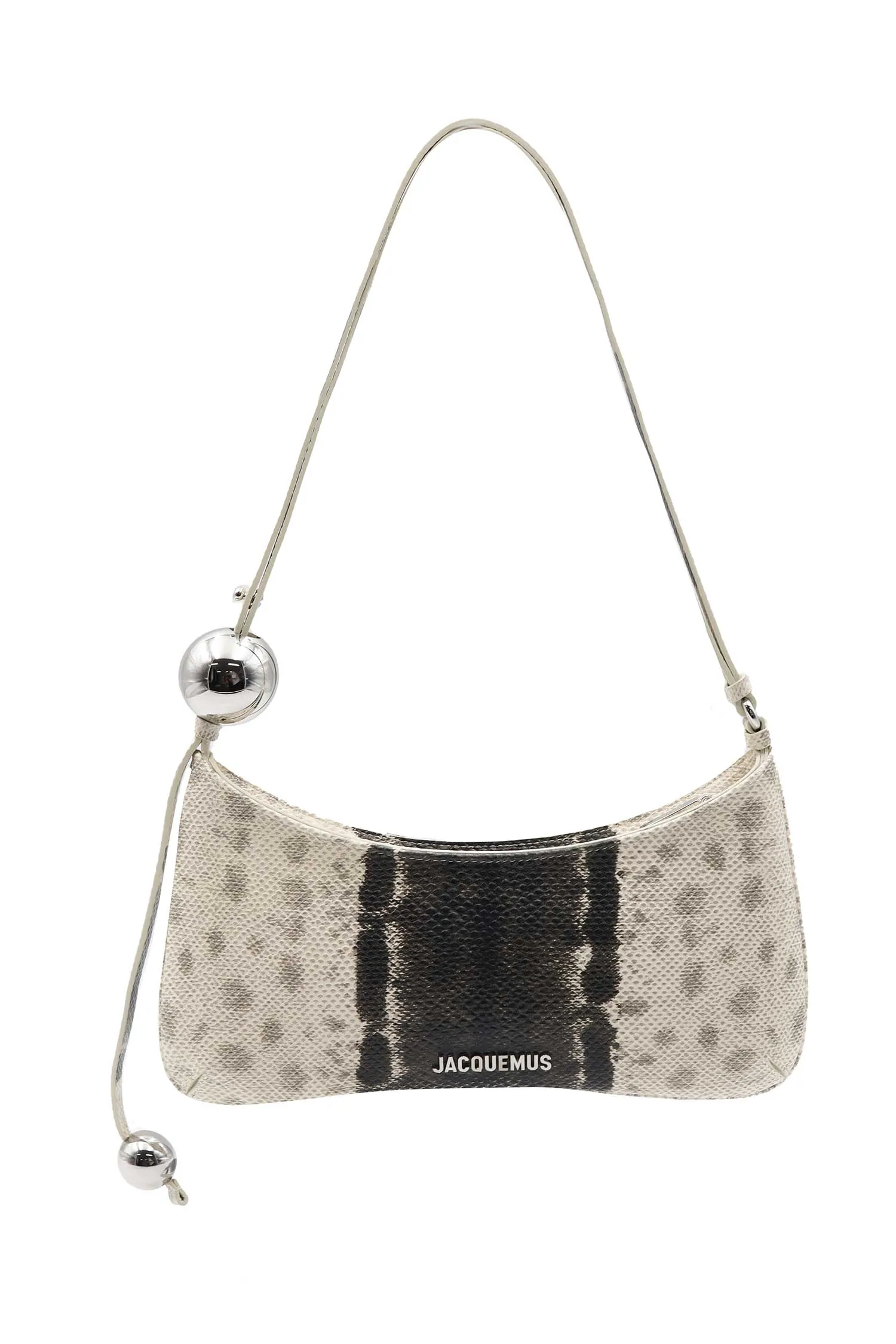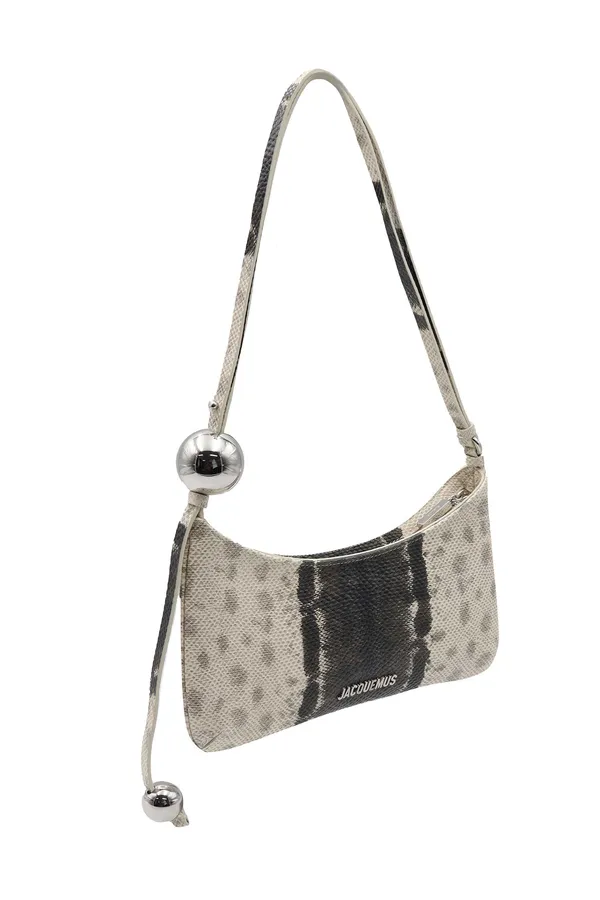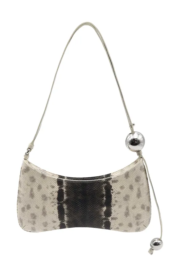 СУМКА LE BISOU PERLE МОЛОЧНО-СЕРАЯ ПИТОН, КРУПНАЯ СЕРЕБРИСТАЯ БУСИНА И ЛОГО-НАДПИСЬ, РЕМЕШОК