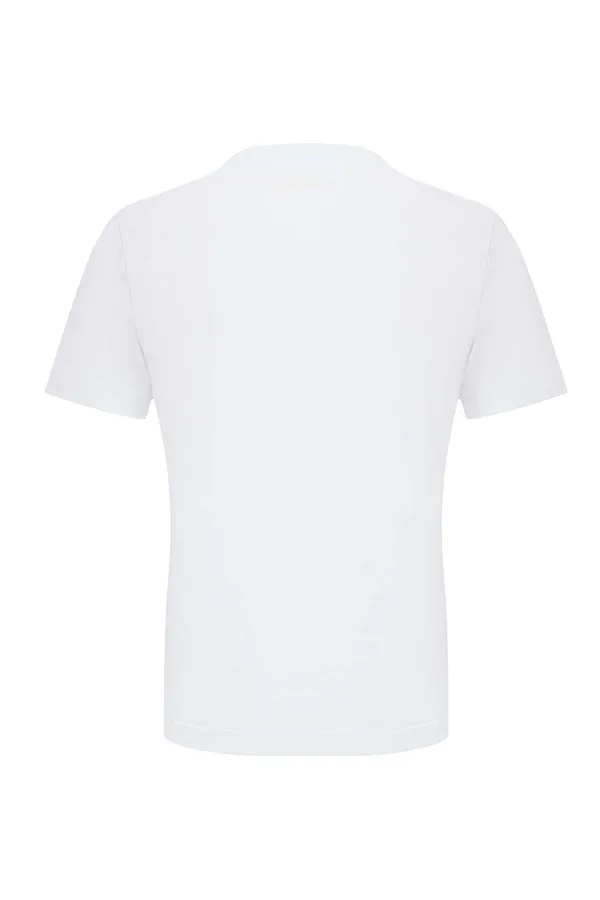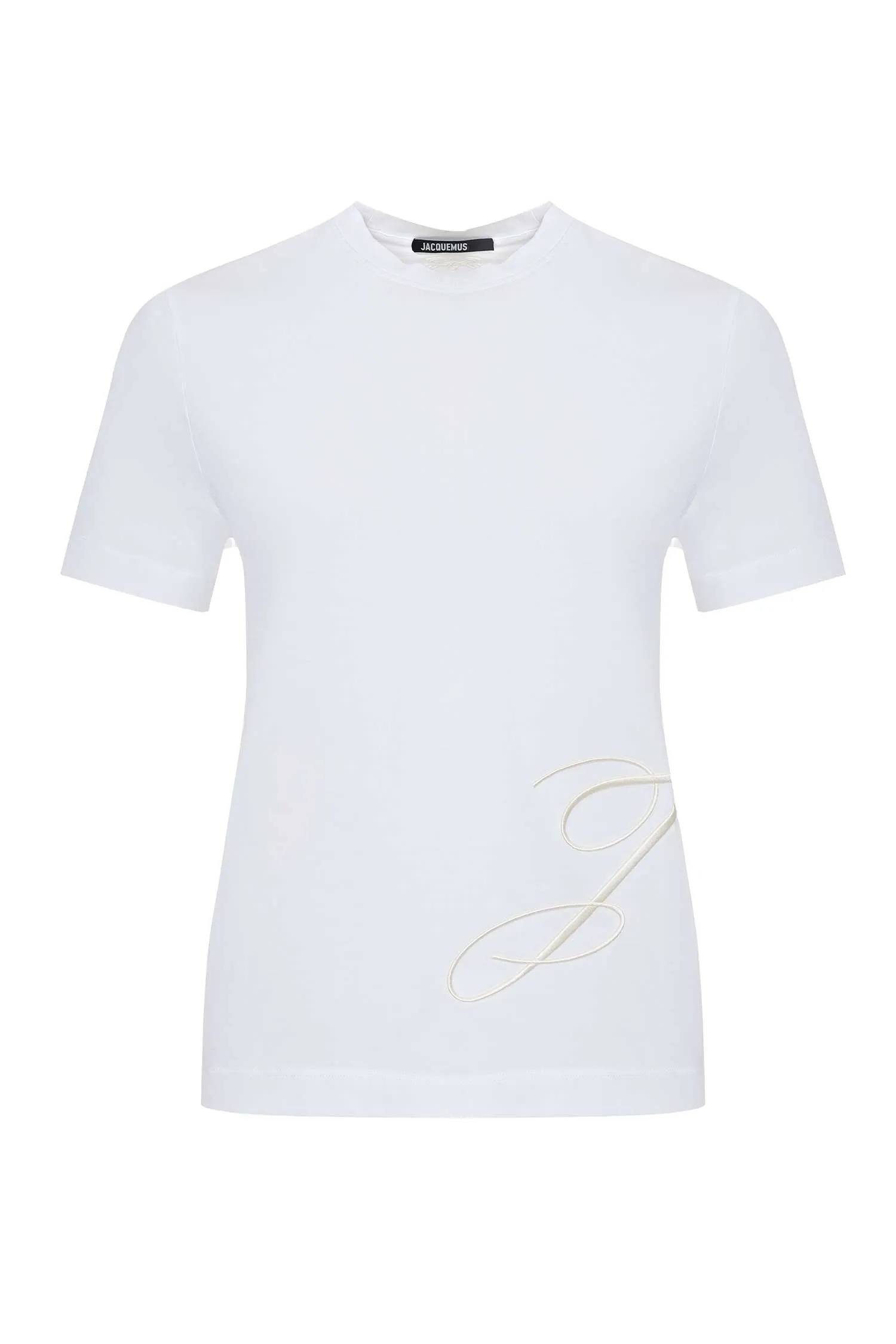ФУТБОЛКА БЕЛАЯ, СБОКУ ВЫШИТАЯ МОЛОЧНАЯ ЛОГО-БУКВА