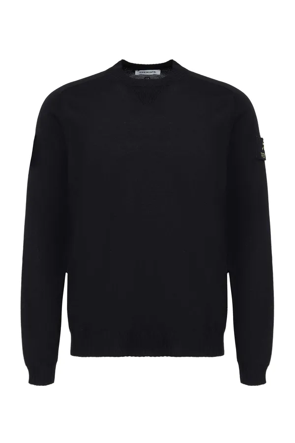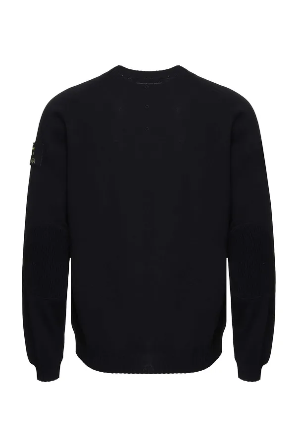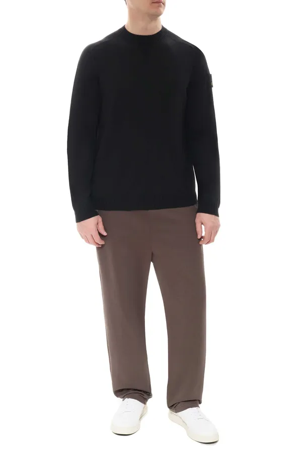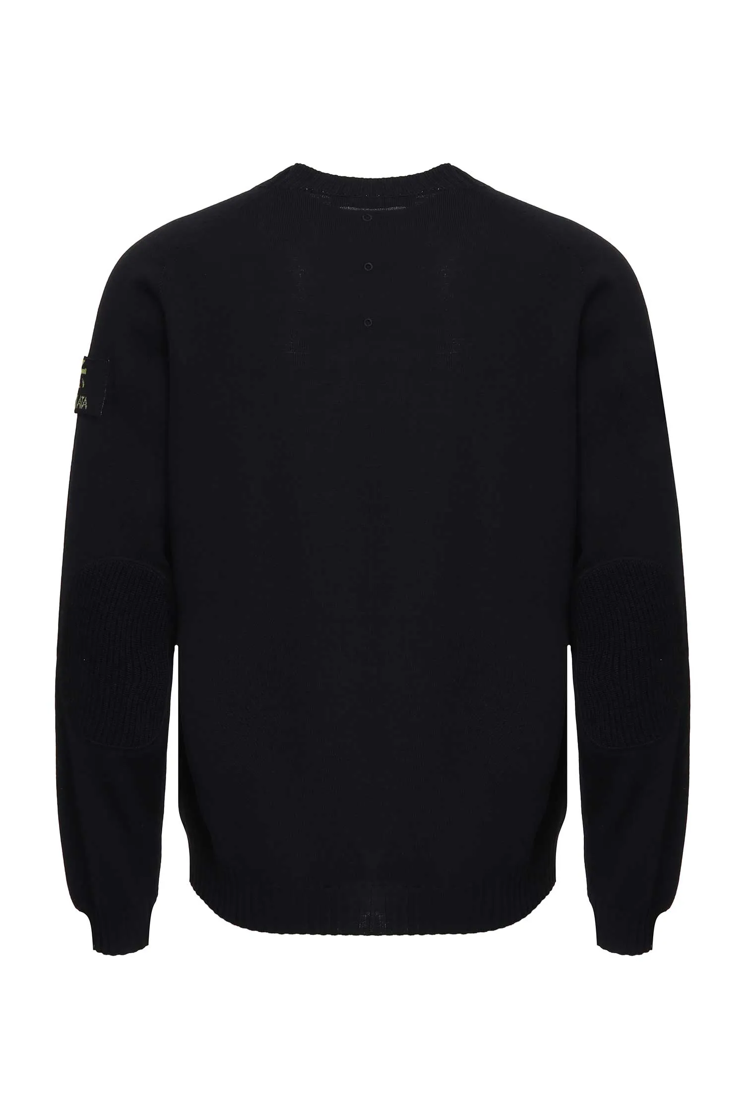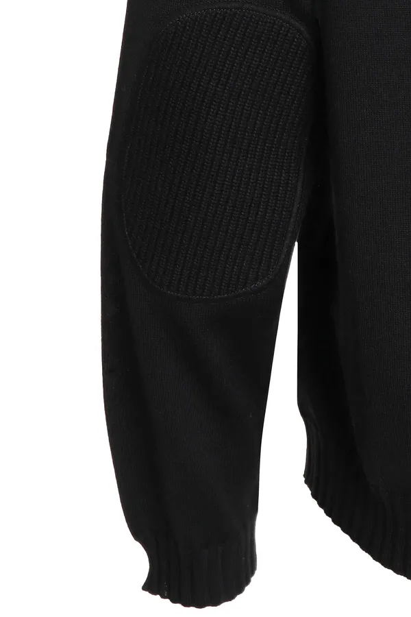 ДЖЕМПЕР ЧЁРНЫЙ ШЕРСТЬ, НА РУКАВАХ ЗАПЛАТКИ, НАШИВКА-ЛОГО