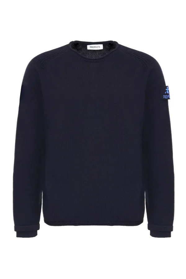 PREMIATA ДЖЕМПЕР M.022 Т/СИНИЙ ШЕРСТЬ, НА РУКАВЕ НАШИВКА-ЛОГО, ДВОЙНЫЕ МАНЖЕТЫ