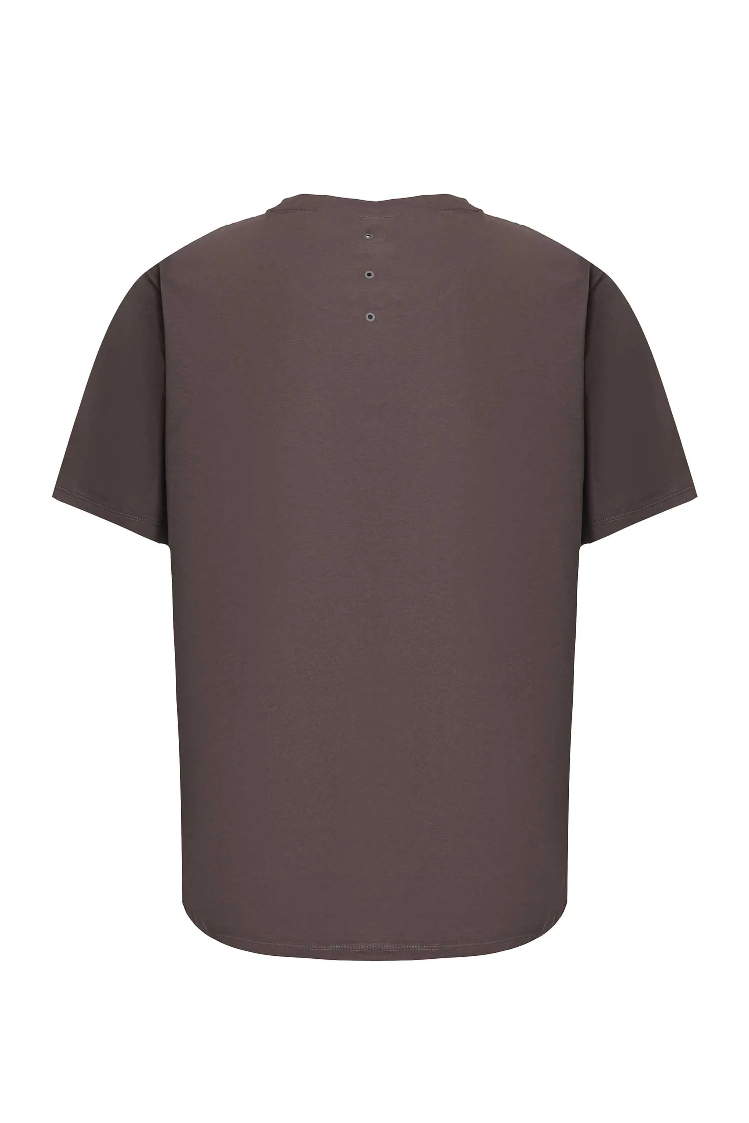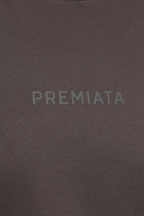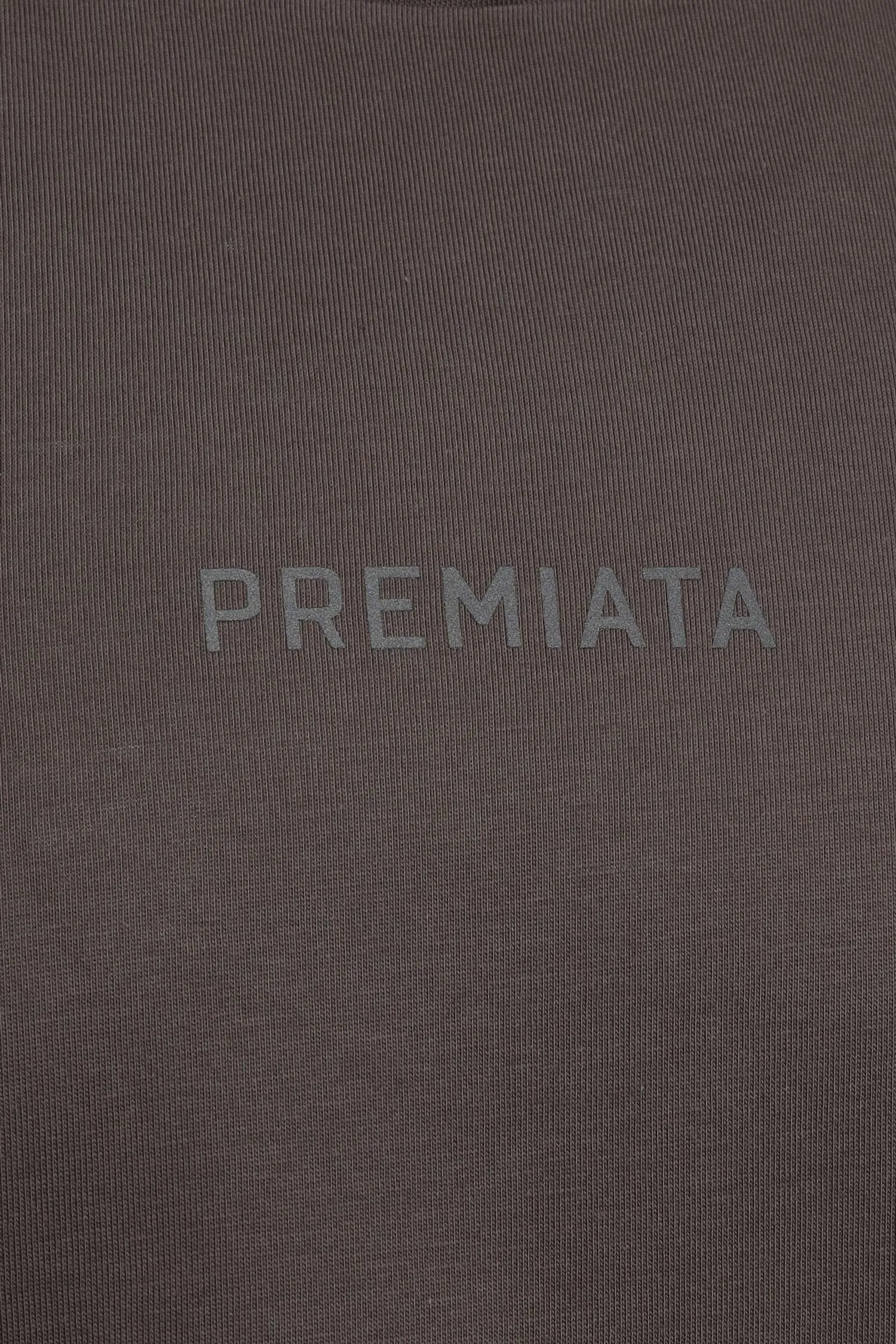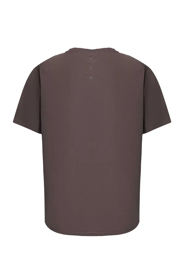 ФУТБОЛКА М.1027 КОРИЧНЕВО-СЕРАЯ, НА ГРУДИ МАЛЕНЬКАЯ СЕРАЯ ЛОГО-НАДПИСЬ