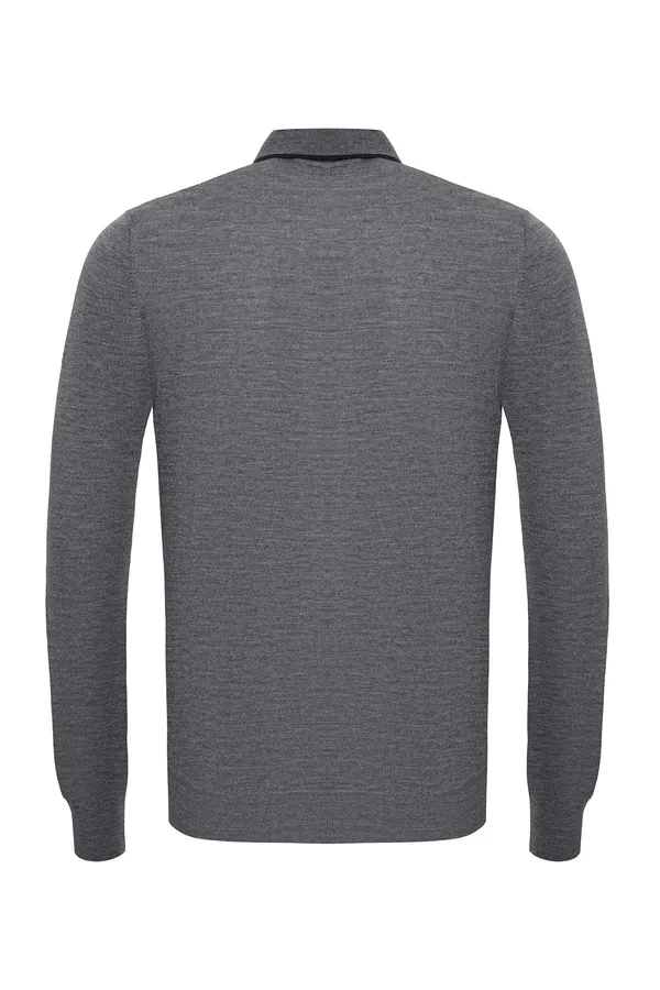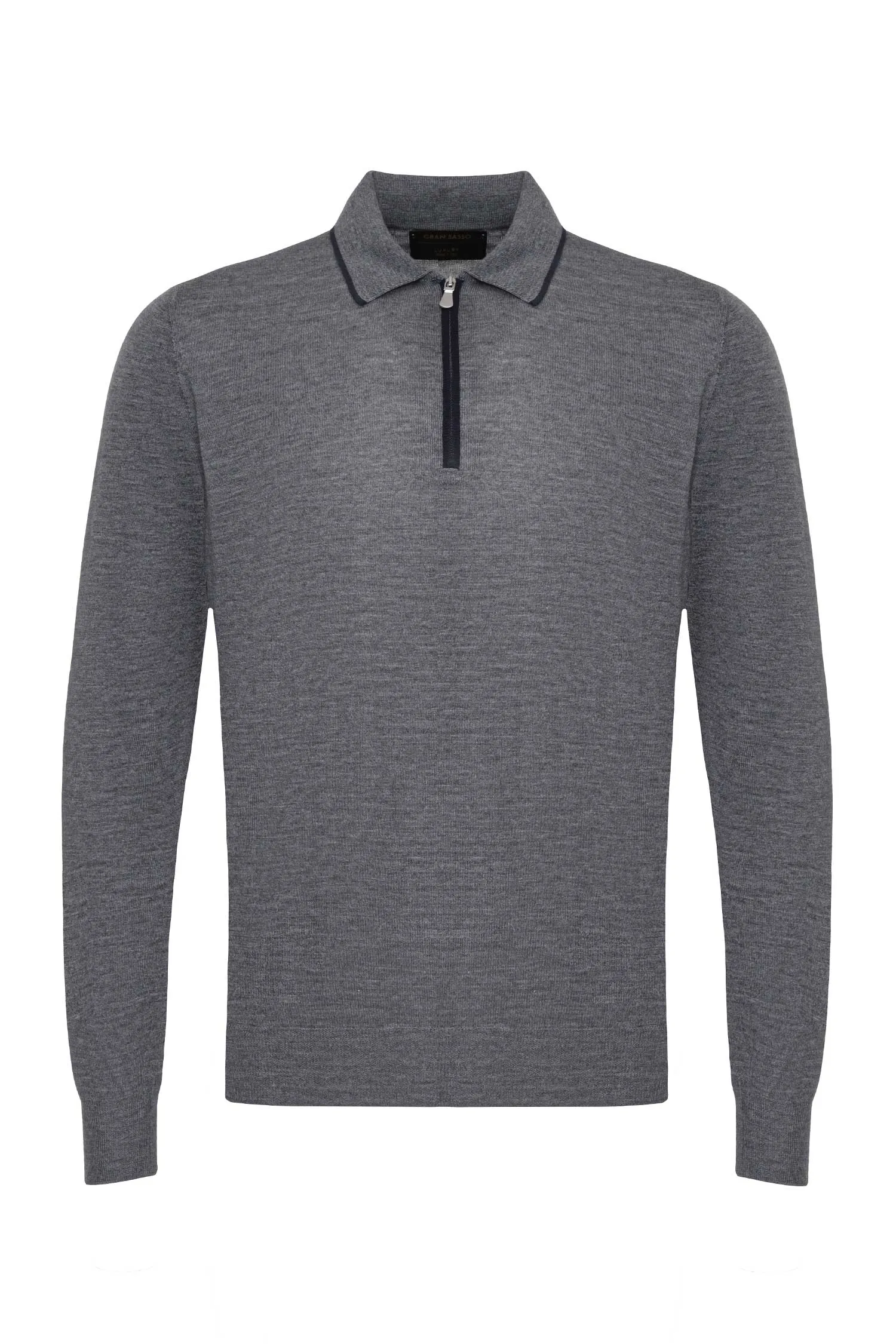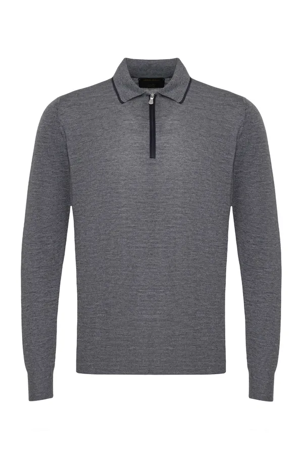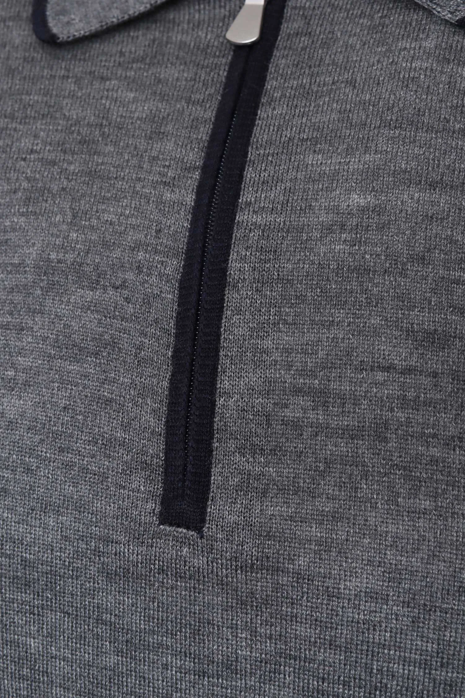 ДЖЕМПЕР-ПОЛО СЕРЫЙ ШЕРСТЬ/ШЁЛК, ТОНКИЙ, ВОРОТ НА МОЛНИИ, Т/СИНЯЯ ОКАНТОВКА НА ВОРОТНИКЕ, ДЛ/РУК.