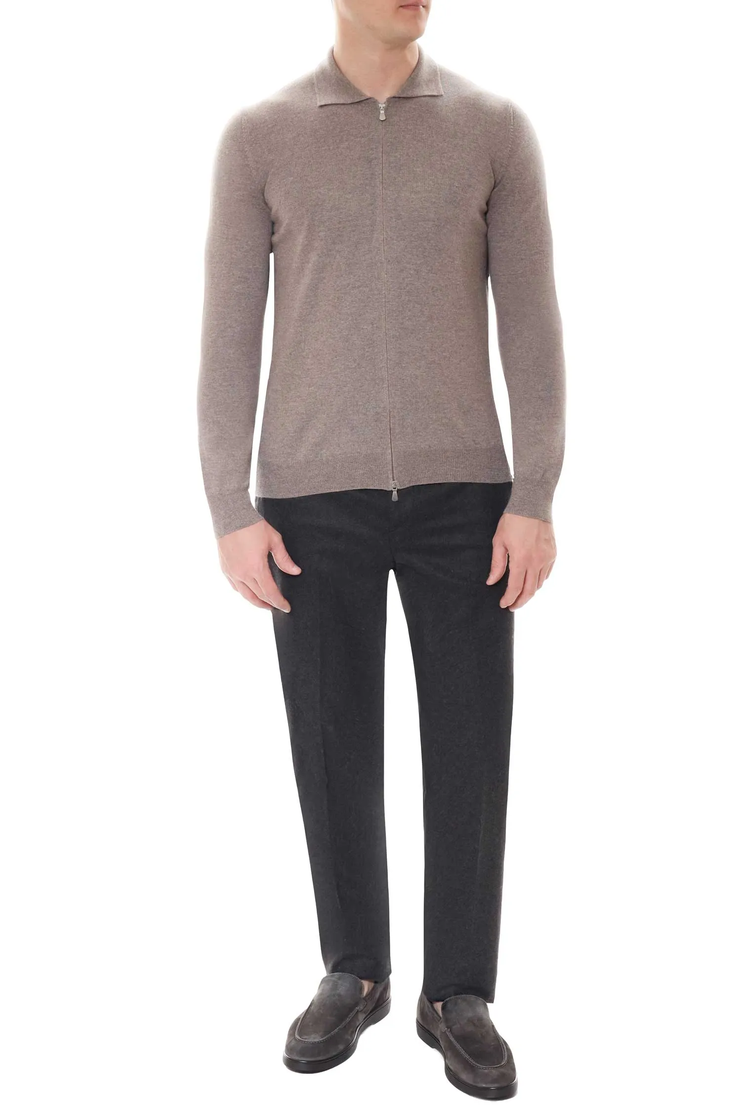 КАРДИГАН КОРИЧНЕВО-СЕРЫЙ ШЕРСТЬ, ТОНКИЙ, НА МОЛНИИ