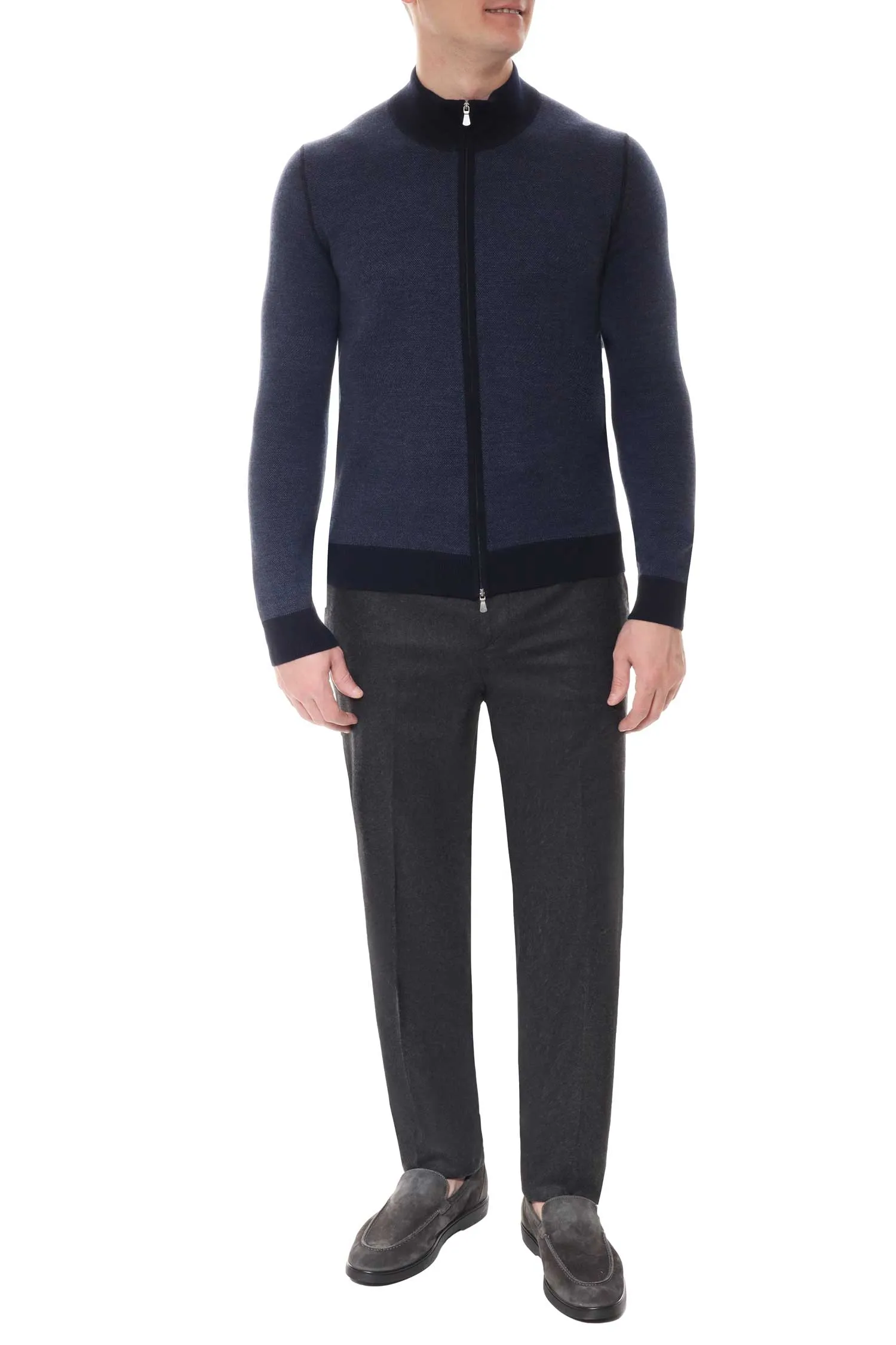 КАРДИГАН M.57114 Т/СИНИЙ ШЕРСТЬ, СЕТЧАТЫЙ УЗОР, НА МОЛНИИ, ВОРОТ-СТОЙКА