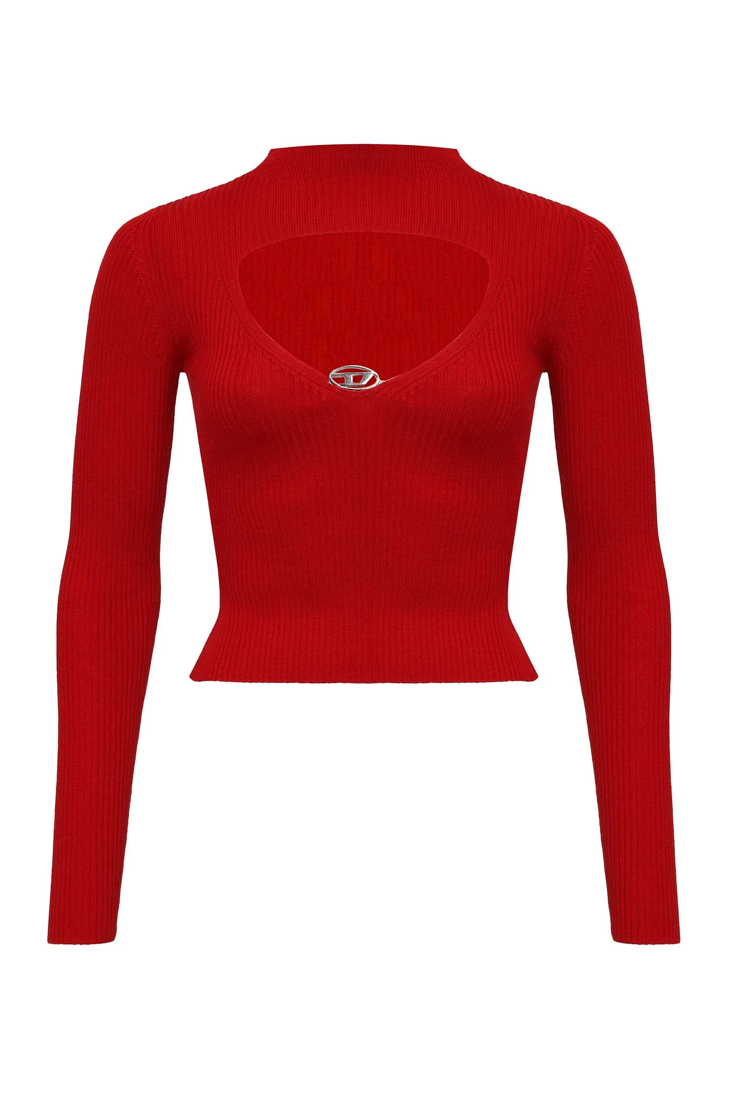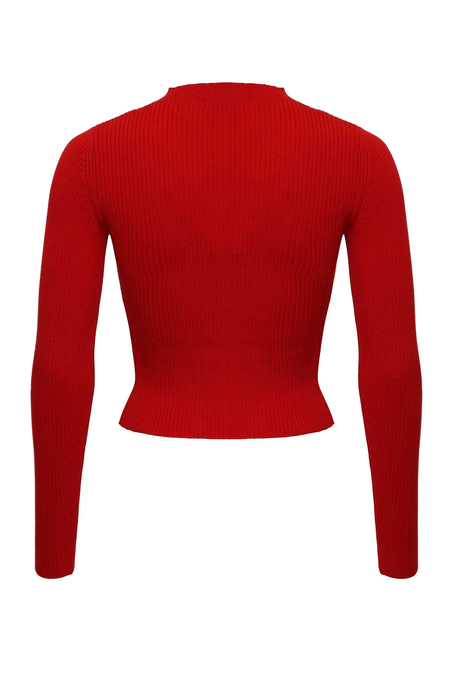 ДЖЕМПЕР M.18904 КРАСНЫЙ ШЕРСТЬ, 12 GG, НА ГРУДИ ТРЕУГОЛЬНЫЙ ВЫРЕЗ, СЕРЕБРИСТ.МЕТАЛЛ.ЛОГО